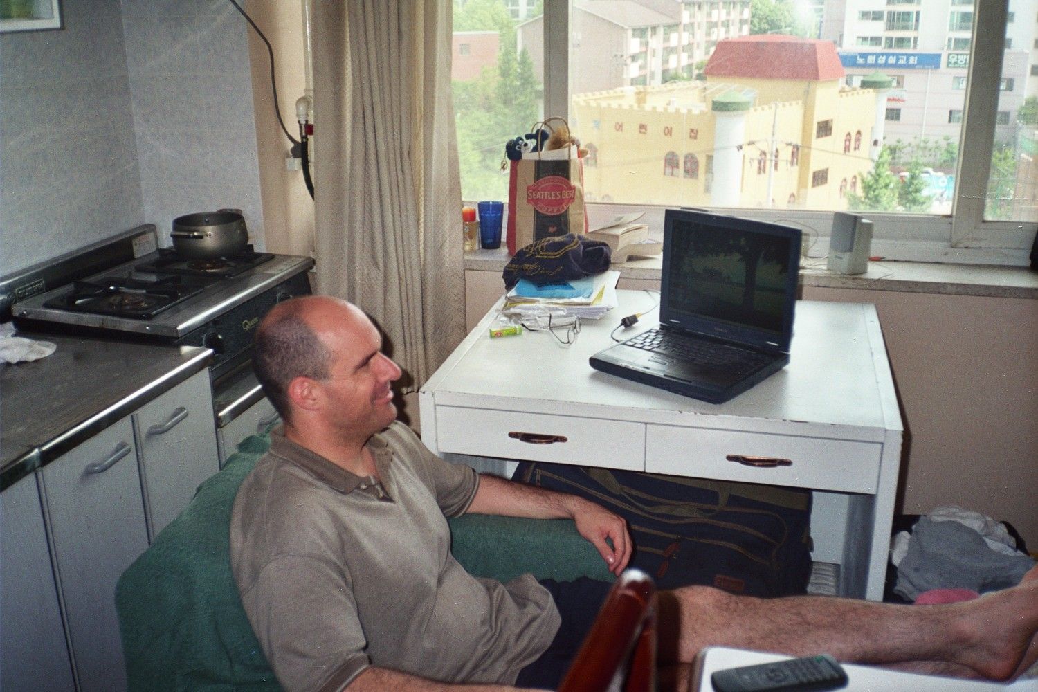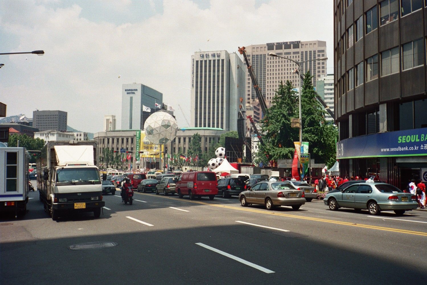 My brother Ray was teaching English in South Korea. I found out I had some flexibility in my schedule and that I could use United Airlines frequent flyer miles to fly to Seoul, so I asked him if I could come out for the world cup and crash on the floor. He said yes, and below are my pictures.