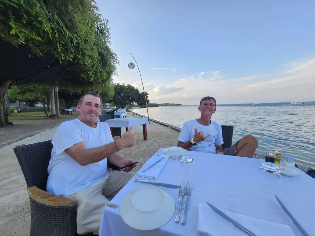 Here’s my friend and Nigel Burrow, the owner of The High Dive, having dinner at the one upscale restaurant in the village. Nigel and his wife escaped the corporate grind in Australia over eight years ago. Their second resort is expected to open in the next year and they have a third, much larger project, slowly winding its way through the local legal system.