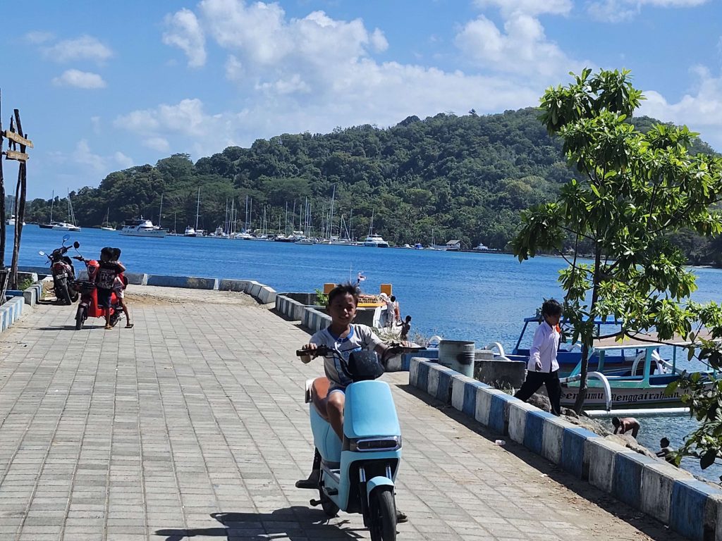 The view of the tip of Gili Gede from the small village in Lombok we arrived at. You can see how young the kids are when they start riding motorbikes.