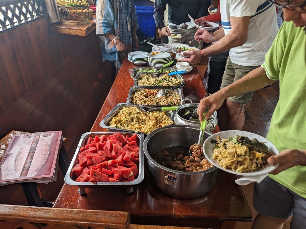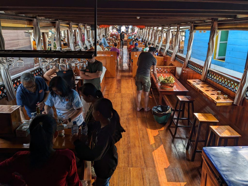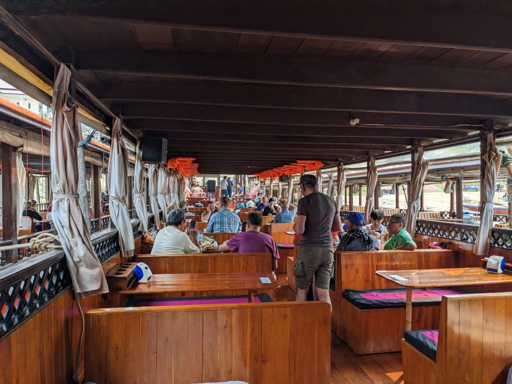 The boat had a lot of room. We had assigned tables, but there was a lot of space throughout the boat to hang out away from your table if you wanted. I shared a table with a Kenji from Tokyo who is a director for NHK TV and an avid railroad traveler. He was there to take the new Chinese financed speed train through Laos into Thailand.