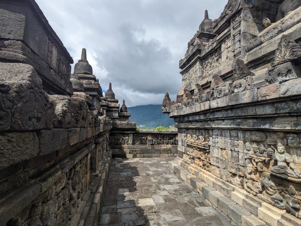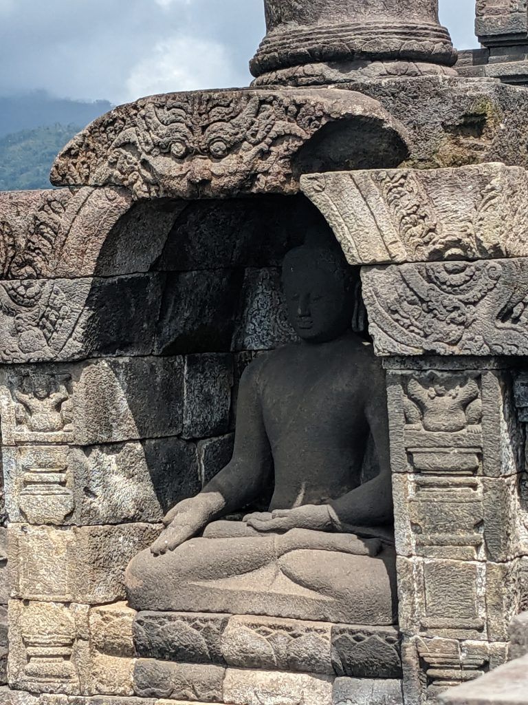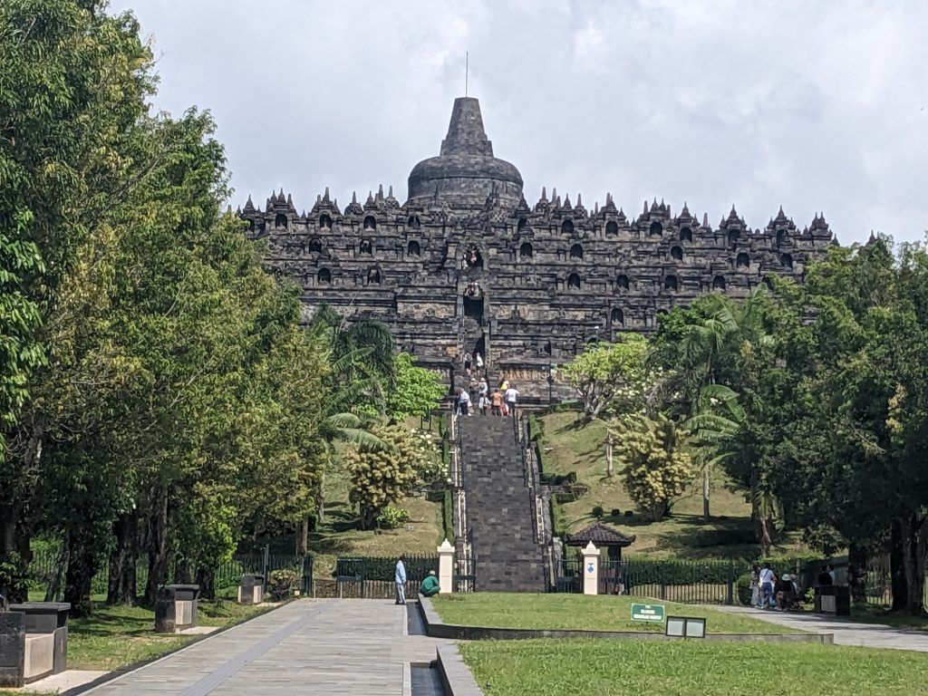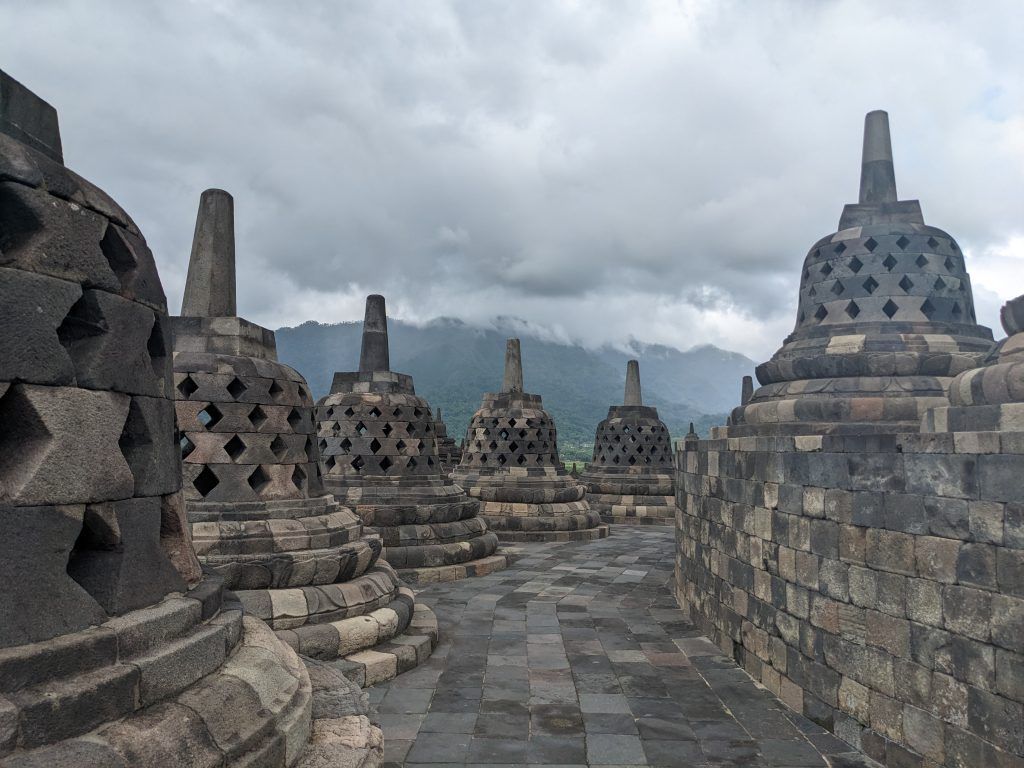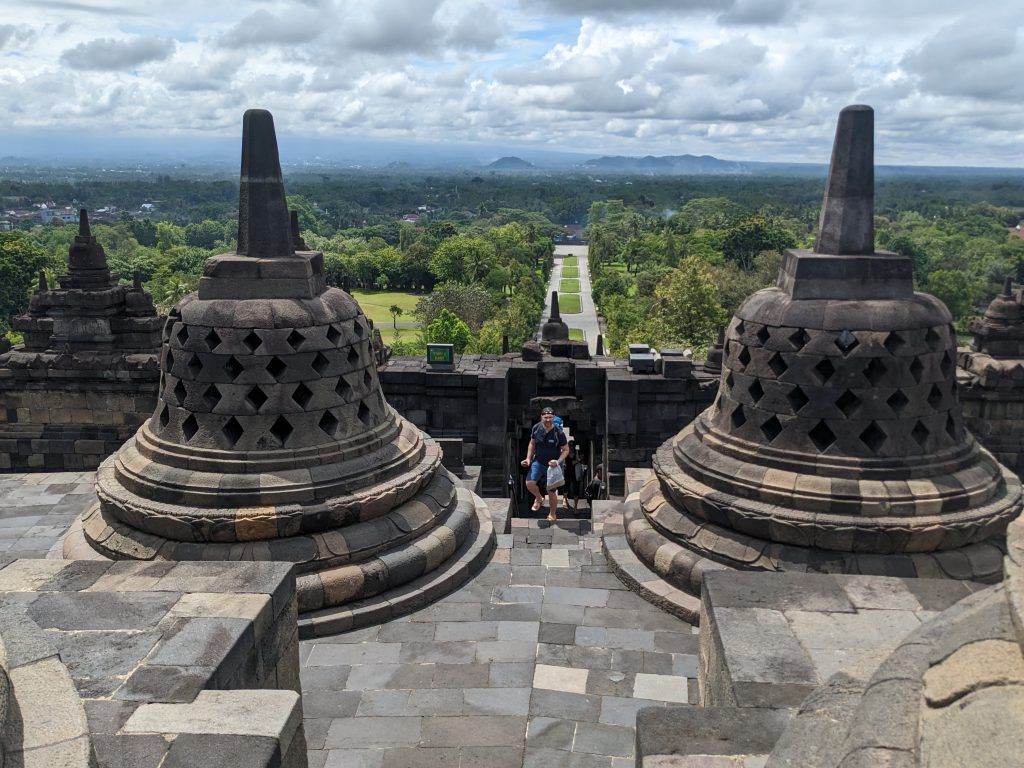 Borobudur is absolutely amazing. It’s an incredible monument surrounded by lush green hills.