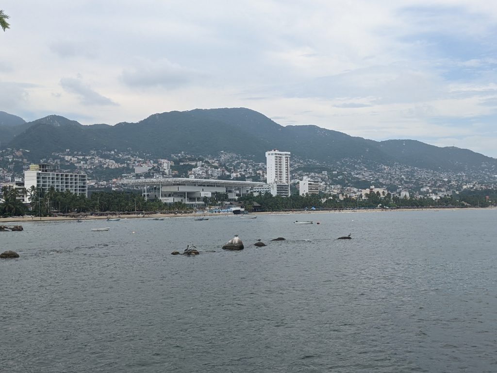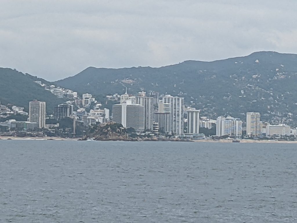 Acapulco was the first famous Mexican beach resort, coming into prominence in the 1940s as a place for millionaires and Hollywood stars to vacation. Other Mexican resorts have passed it up in popularity, but Acapulco still seems to be standing strong. From my short time there it seems to be big, brash and crowded. As with all the other Mexican towns and cities on the Pacific Coast it’s situated in a magnificant bay framed by sharply rising lush green mountains in the background.
