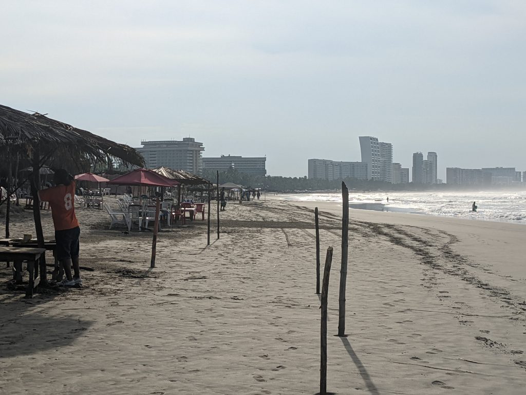 I ended up staying about 40 minutes south of downtown Acapulco in the newer, relaxed resort area of Diamante. It was walking distance to the surfing area at Playa Revolcadero. The brothers I surfed with from Ixtapa – Leo and Edger – referred me to Micha at ACA Surf here. I had planned to surf four days here. Day 1 was great. I spent about an hour with Max as a coach and an hour on my own. Max was born here, but grew up in Orange County and played water polo and swam at Santa Ana High and at Santa Ana College. After a career as an electrician he moved back here, married a local woman, and is raising a family here now.