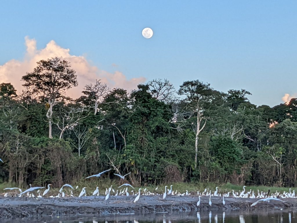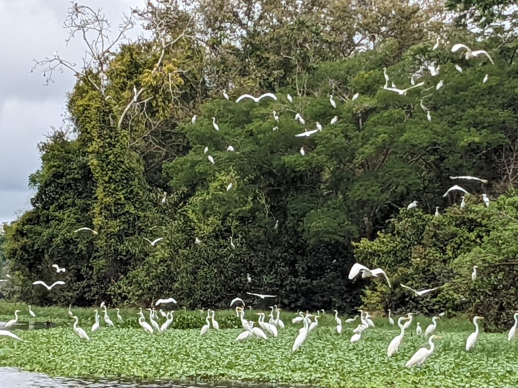 One on of our boat rides we heard a lot of birds in one place. We turned a corner and saw a feeding frenzy. One or two birds would take turns hitting a flying ant nest and the rest would buzz around eating the ants that came flying out. My guide had been doing this for 15 years and had never seen anything like this. He counted at least 7 bird species. The whole thing lasted about 15 mintues. The video and pictures below don’t really capture the full experience.