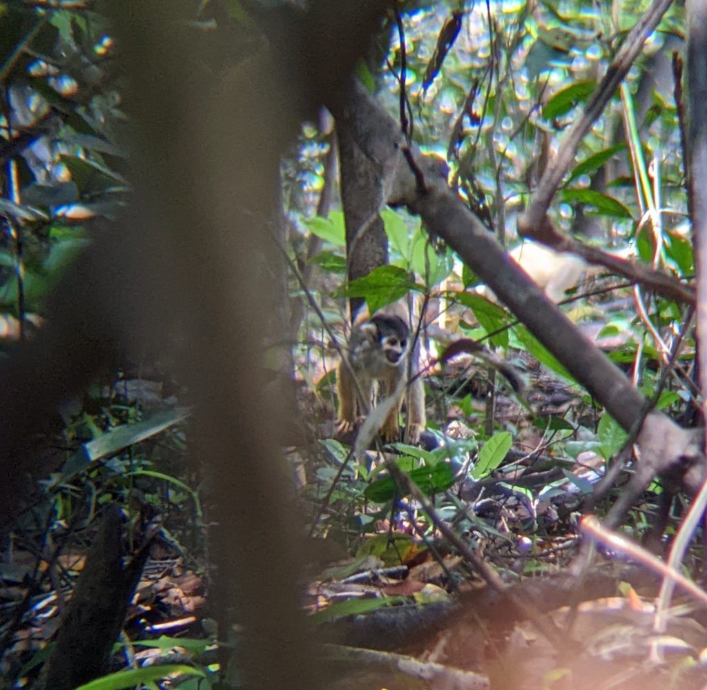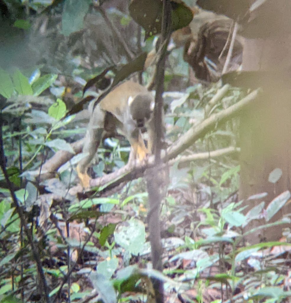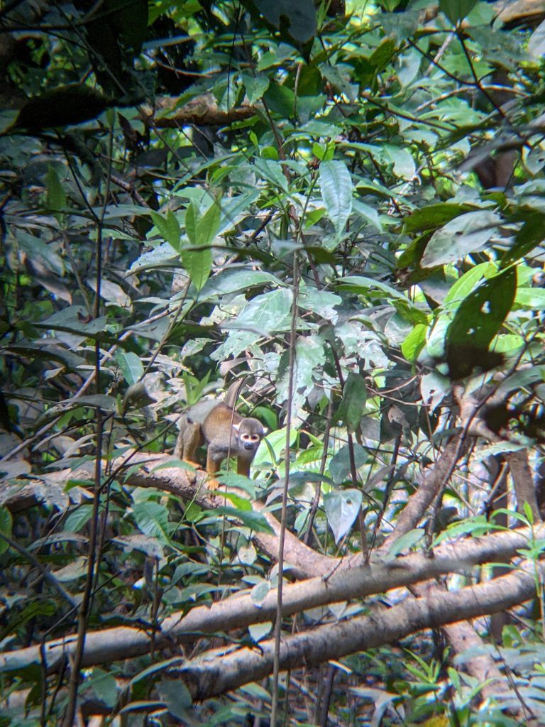 And then we saw a troop of about 20 squirrel monkees descending from the trees and walking in the forest about 50 meters away.