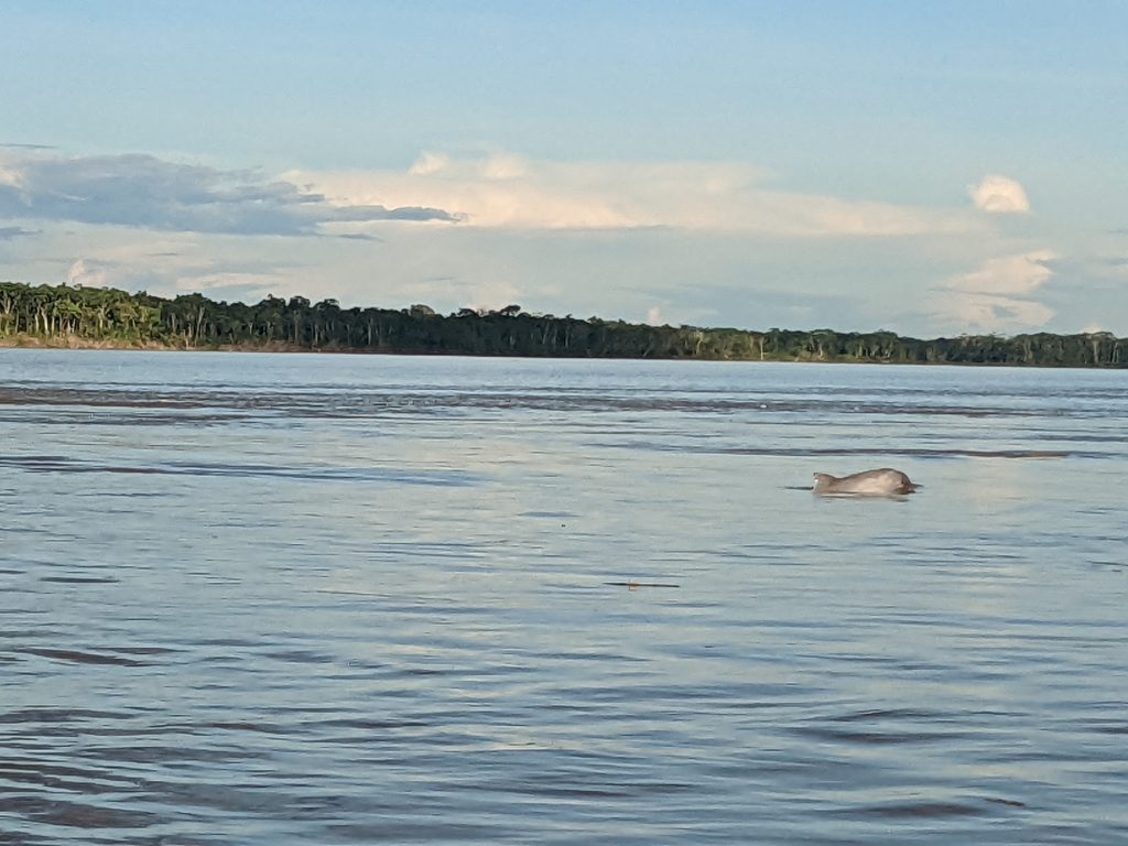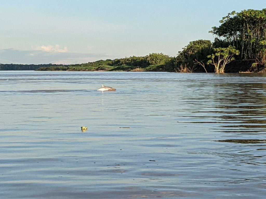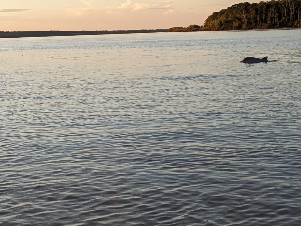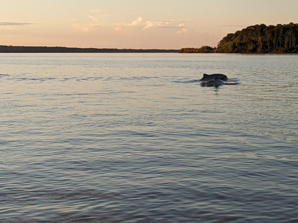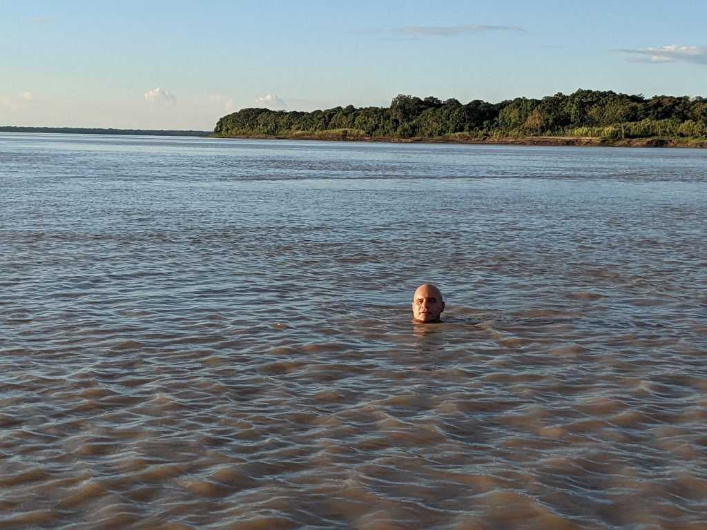 I had a chance to go swimming in the Amazon River near where some dolphins were surfacing.