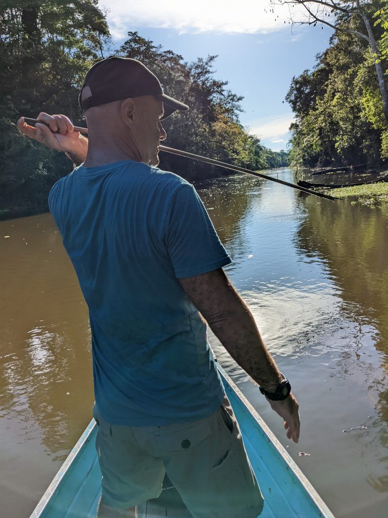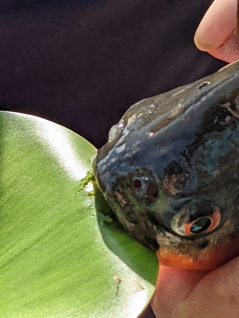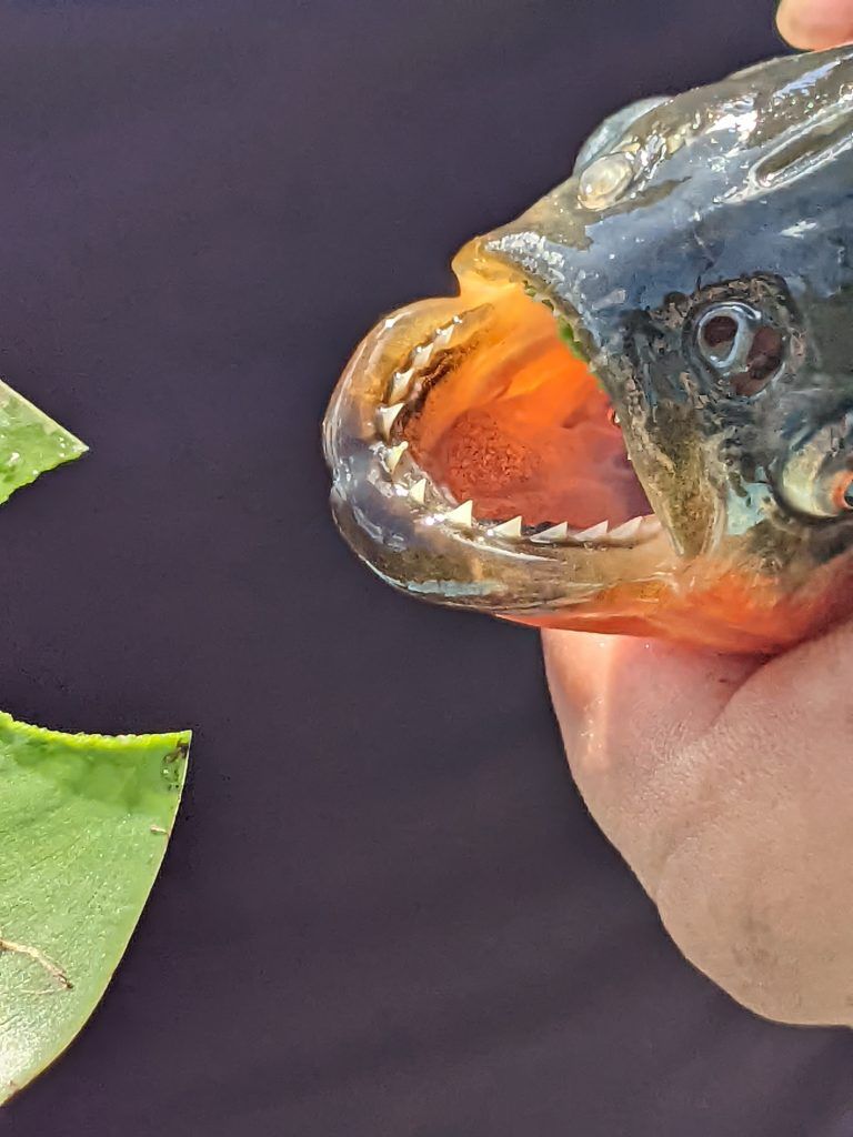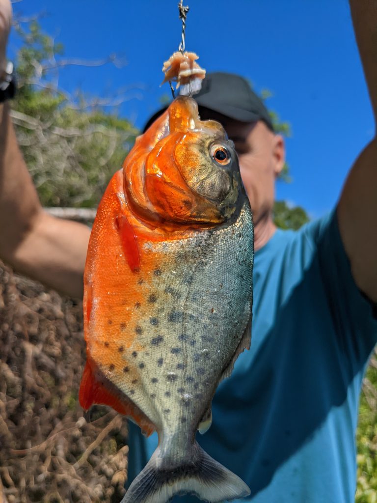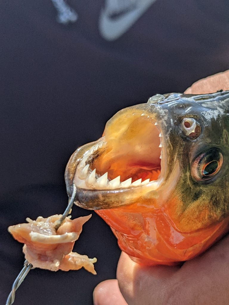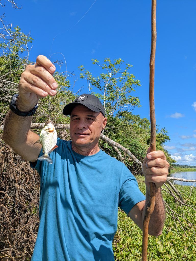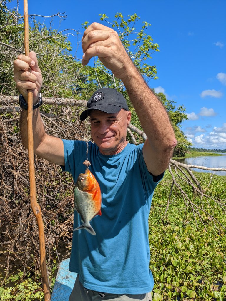 I haven’t done any fishing since I was a kid. But my guide gave me a chance to go fishing for piranha. I first caught a baby that we released.