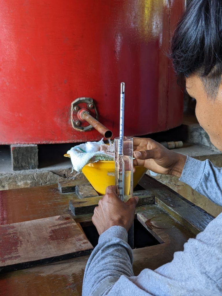 They then take a few hours to boil out the fermented bacteria through the cement furnace below.