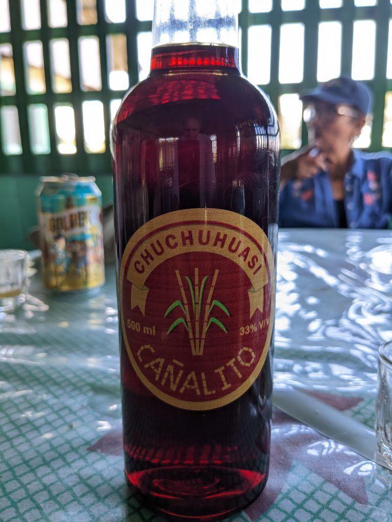 The bottle I bought. It was mixed with special bark and had a relatively smooth taste. They also sell it straight, mixed with fruit or mixed with ginger. My guide preferred the ginger mix.