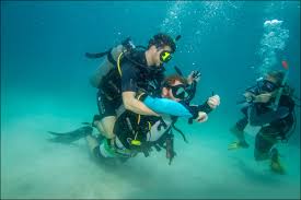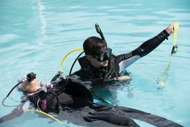 - Dealing with an uncomfortable diver underwater by calming him down and then guiding him by the shoulder for a while until he’s comfortable again