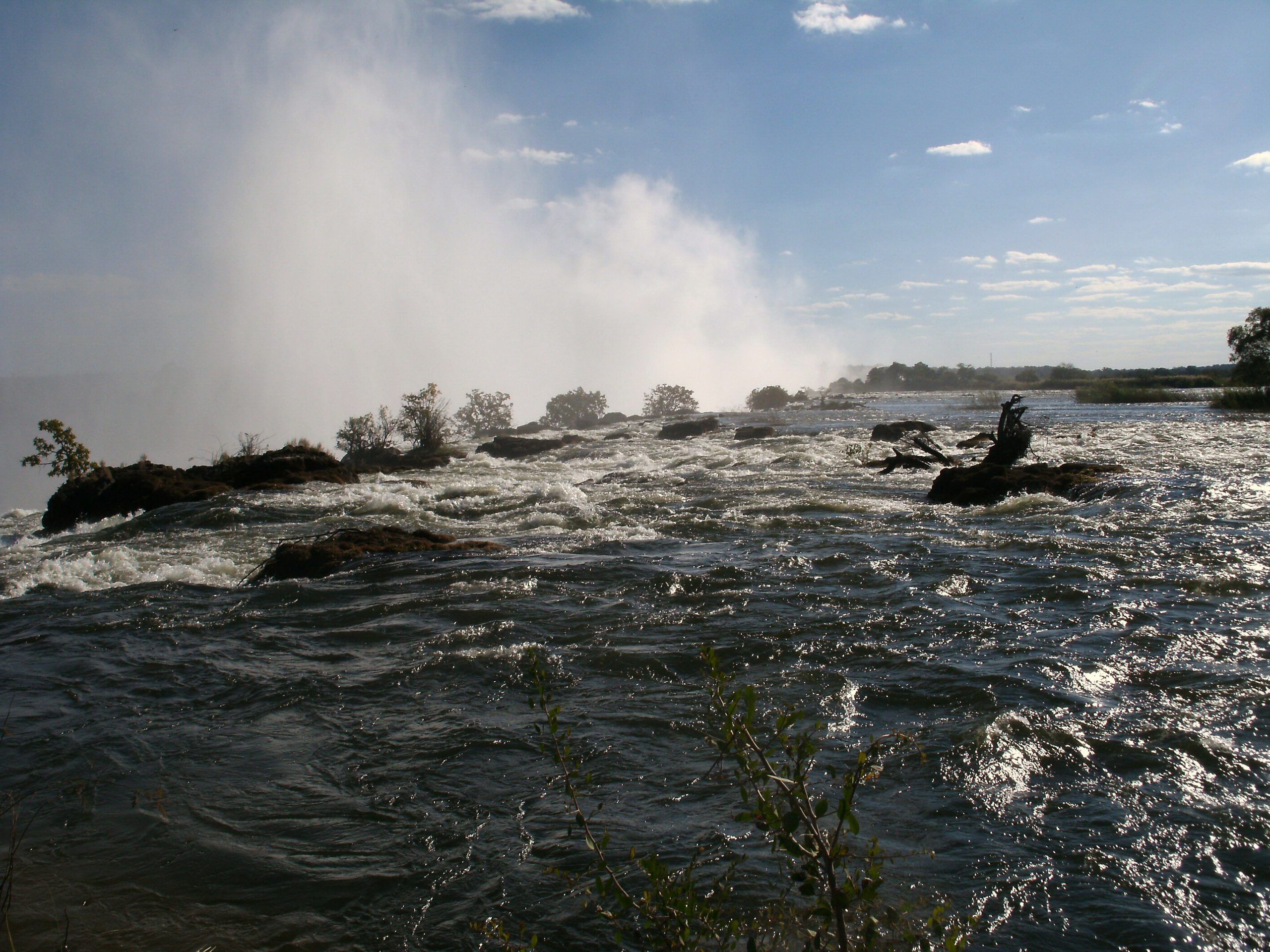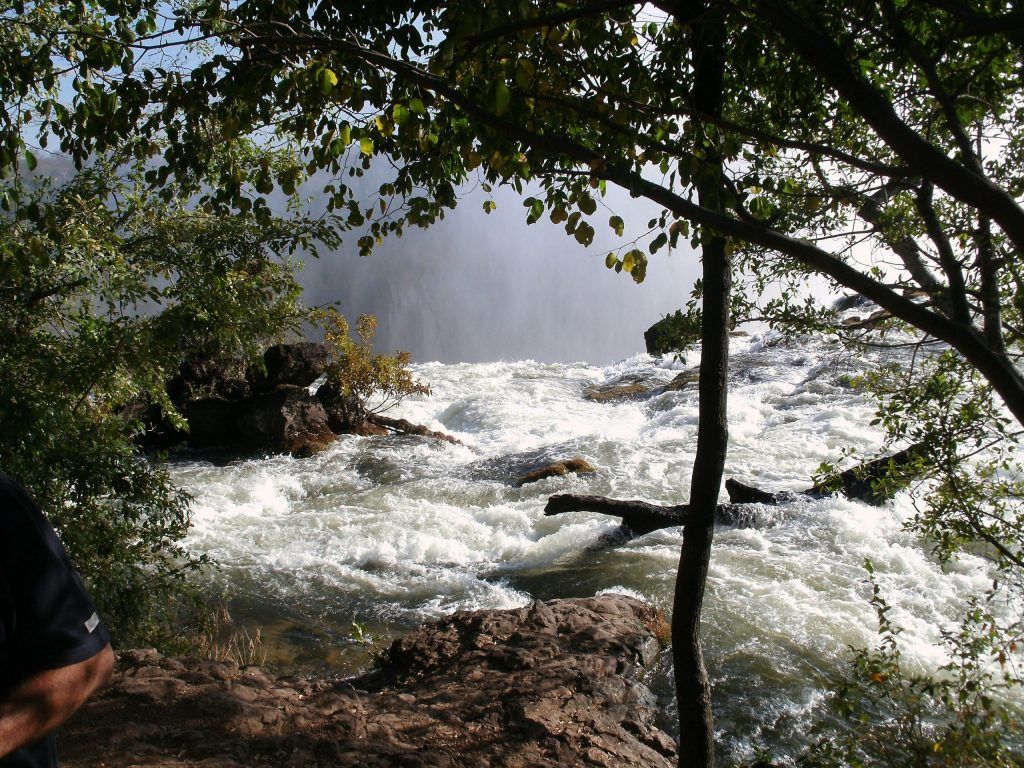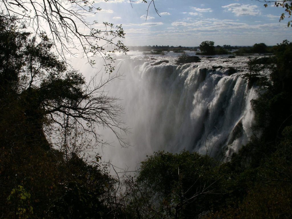 The Victoria Falls constitutes one of the most spectacular natural wonders of the world. It’s the first stop in this Botswana safari. The Local people call it “Mosi-oa-Tunya” — the smoke that thunders, and the Falls are remarkable. There is a magic about them manifested in the towering column of spray when the river is high, the thunder of the falling water, the terrifying abyss and tranquil lagoons upstream in which hippo and deadly crocodiles lurk.