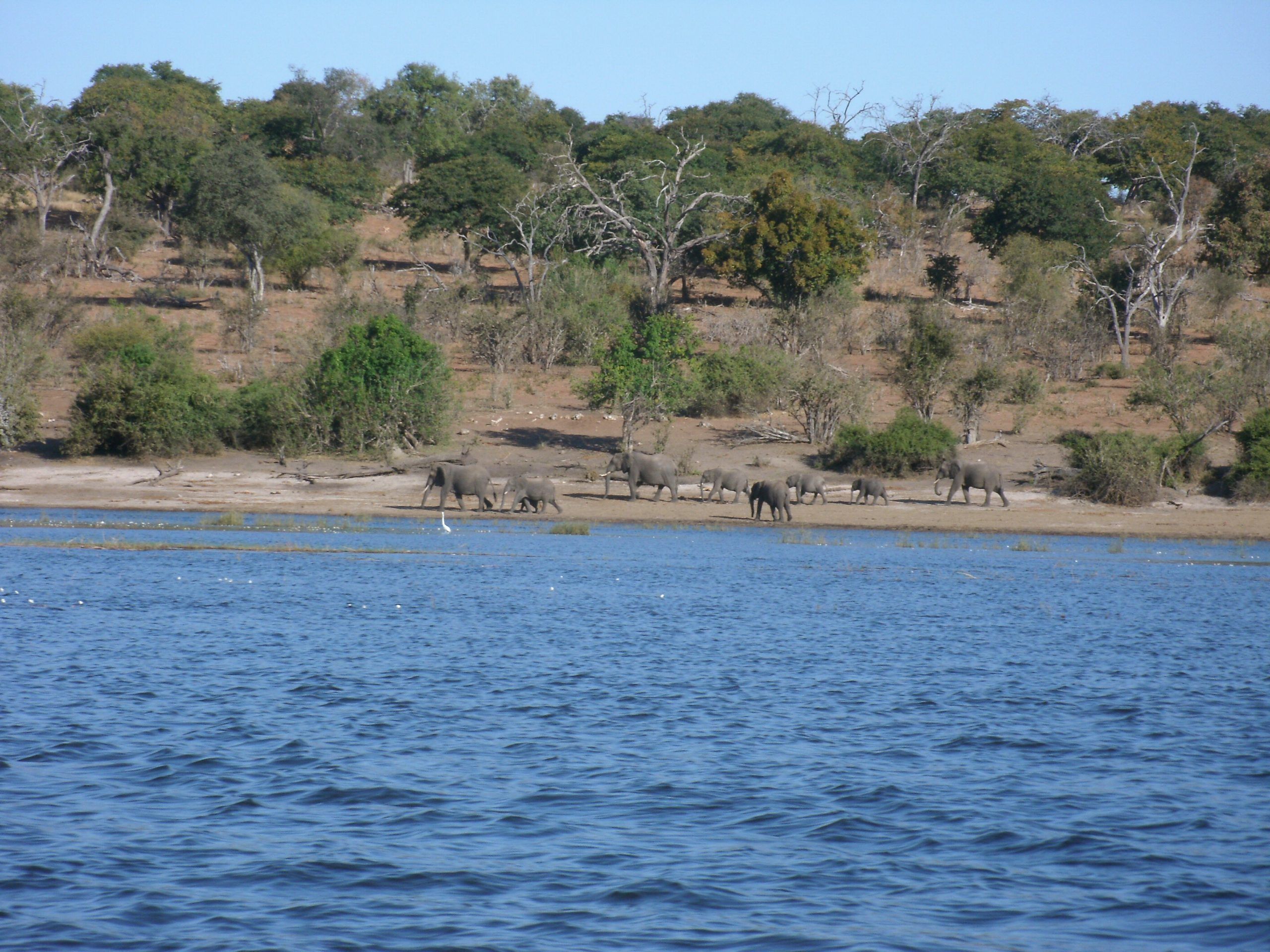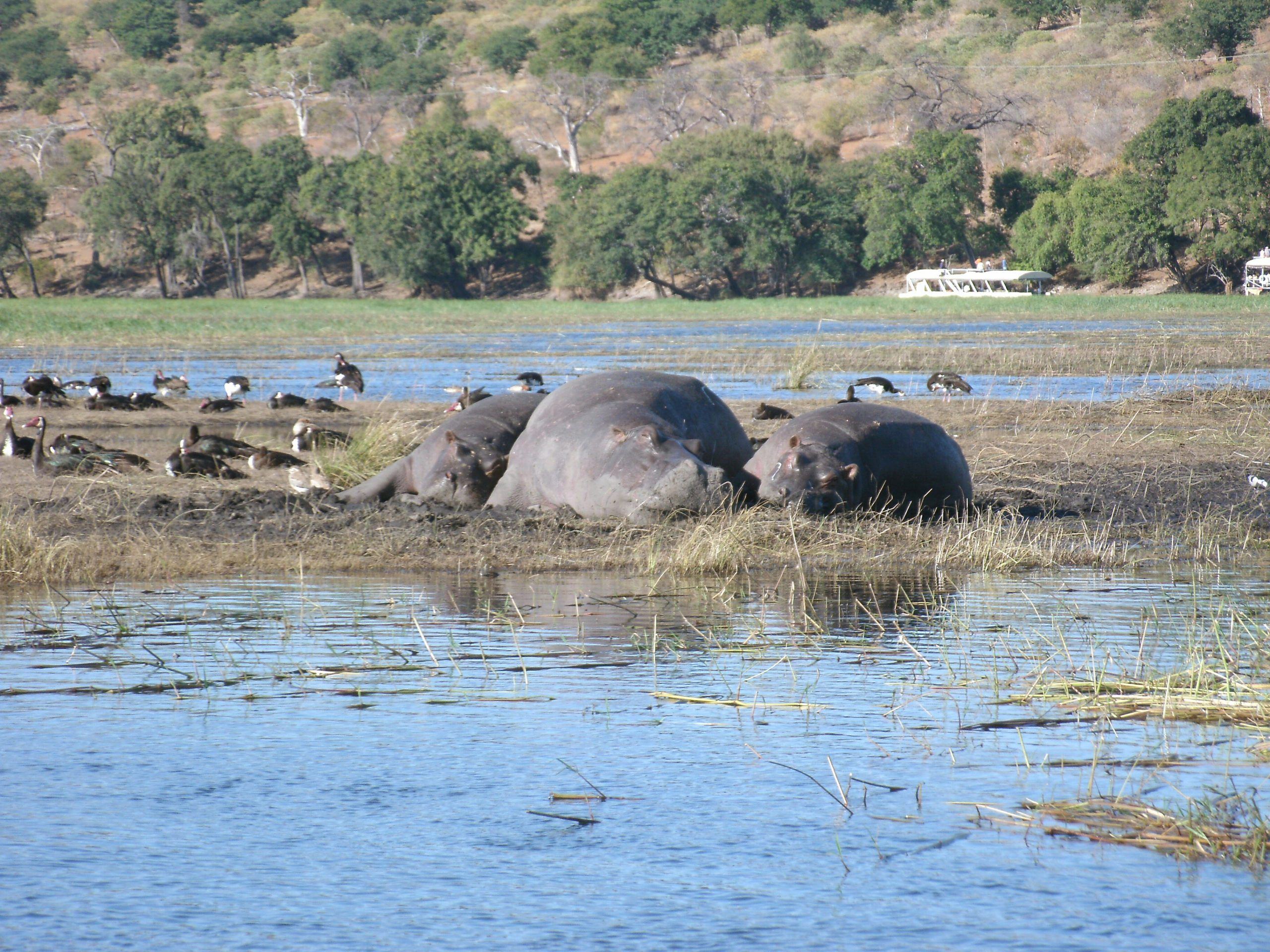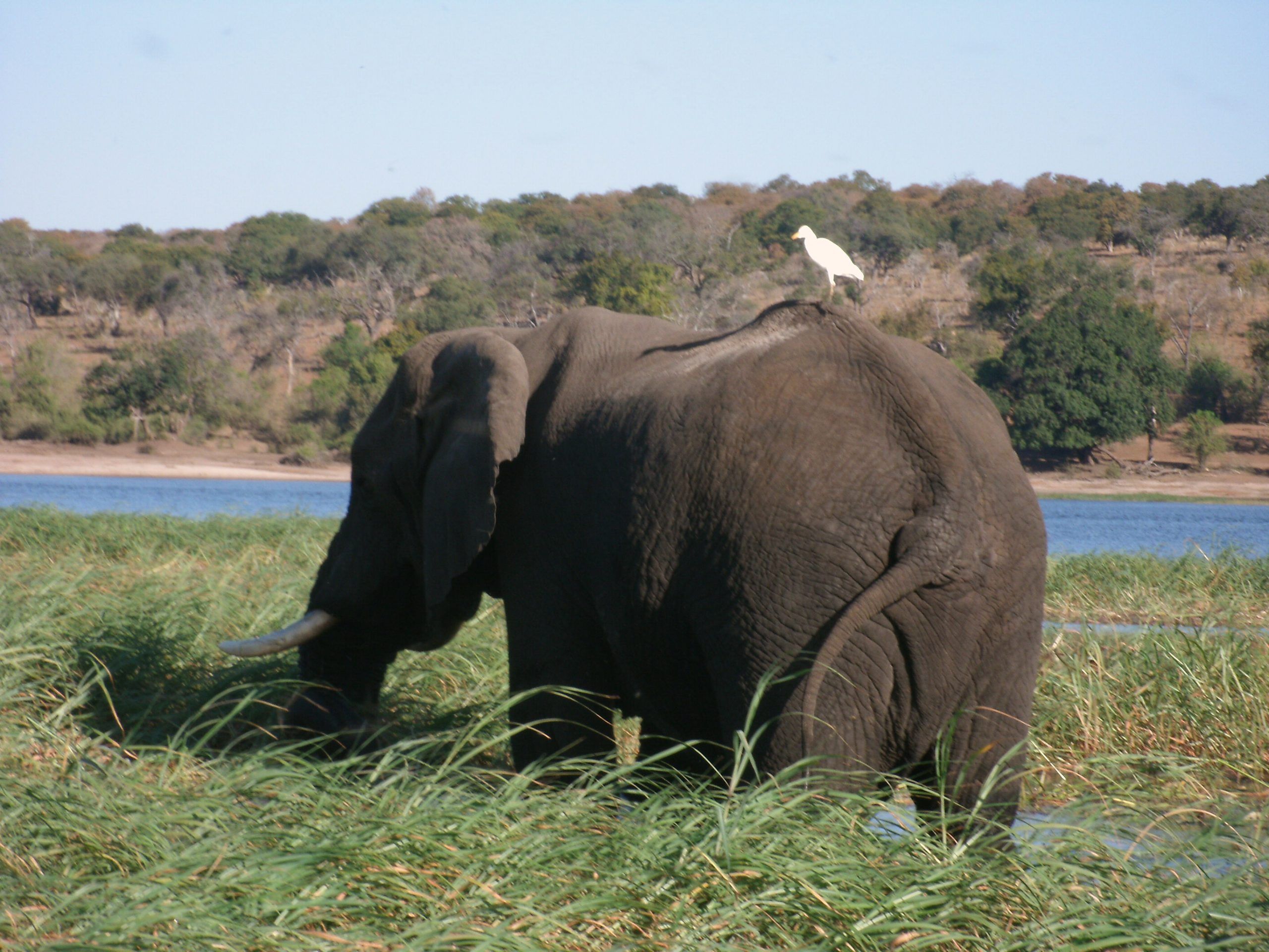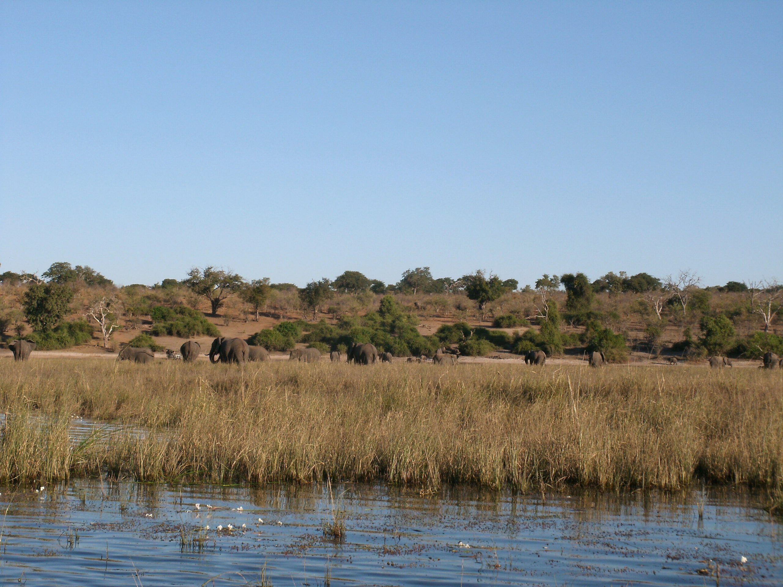 Besides elephant, northern Chobe is famous for its buffalo herds, puku, kudu, Chobe bushbuck and hippo. One could also hope to see: lion, leopard, wild dog, giraffe, waterbuck, zebra, impala, baboon, vervet monkeys, warthog, sable, roan, lechwe, banded mongoose, crocodile, leguan. Along the Chobe riverfront the terrain is that of a typical riverine ecosystem. Away from the river we have mixed miombo and broadleaved woodland that harbours rich avifauna.
