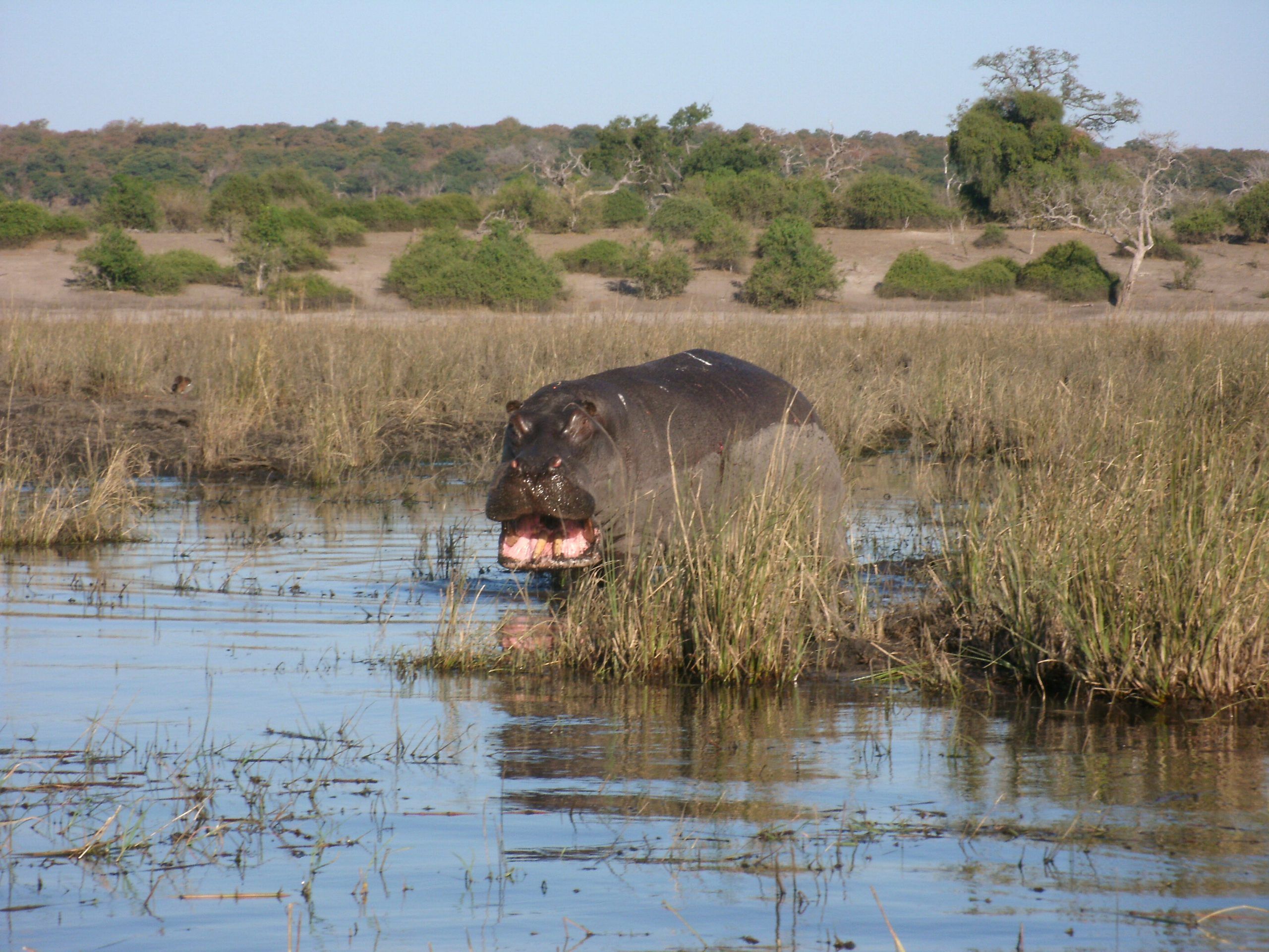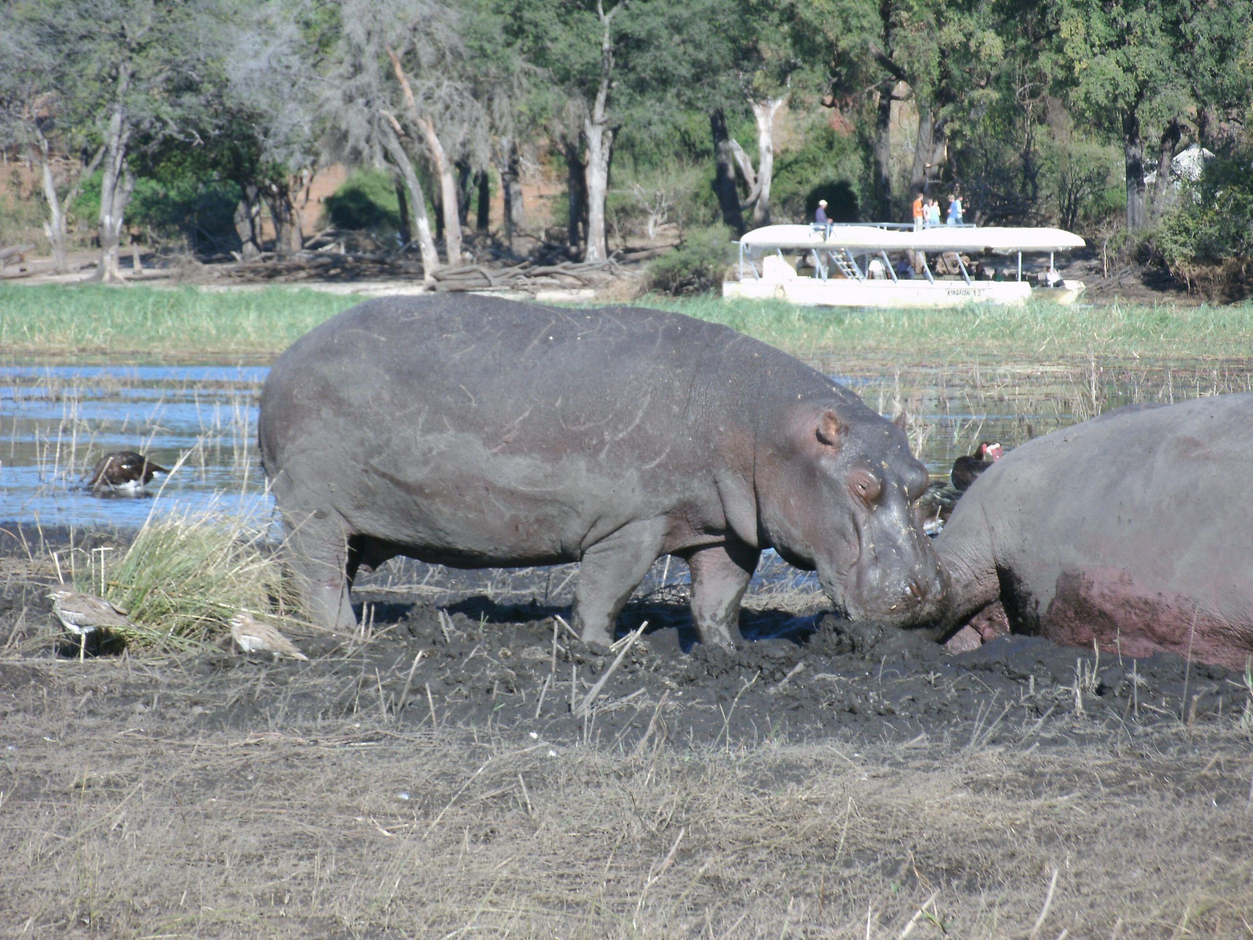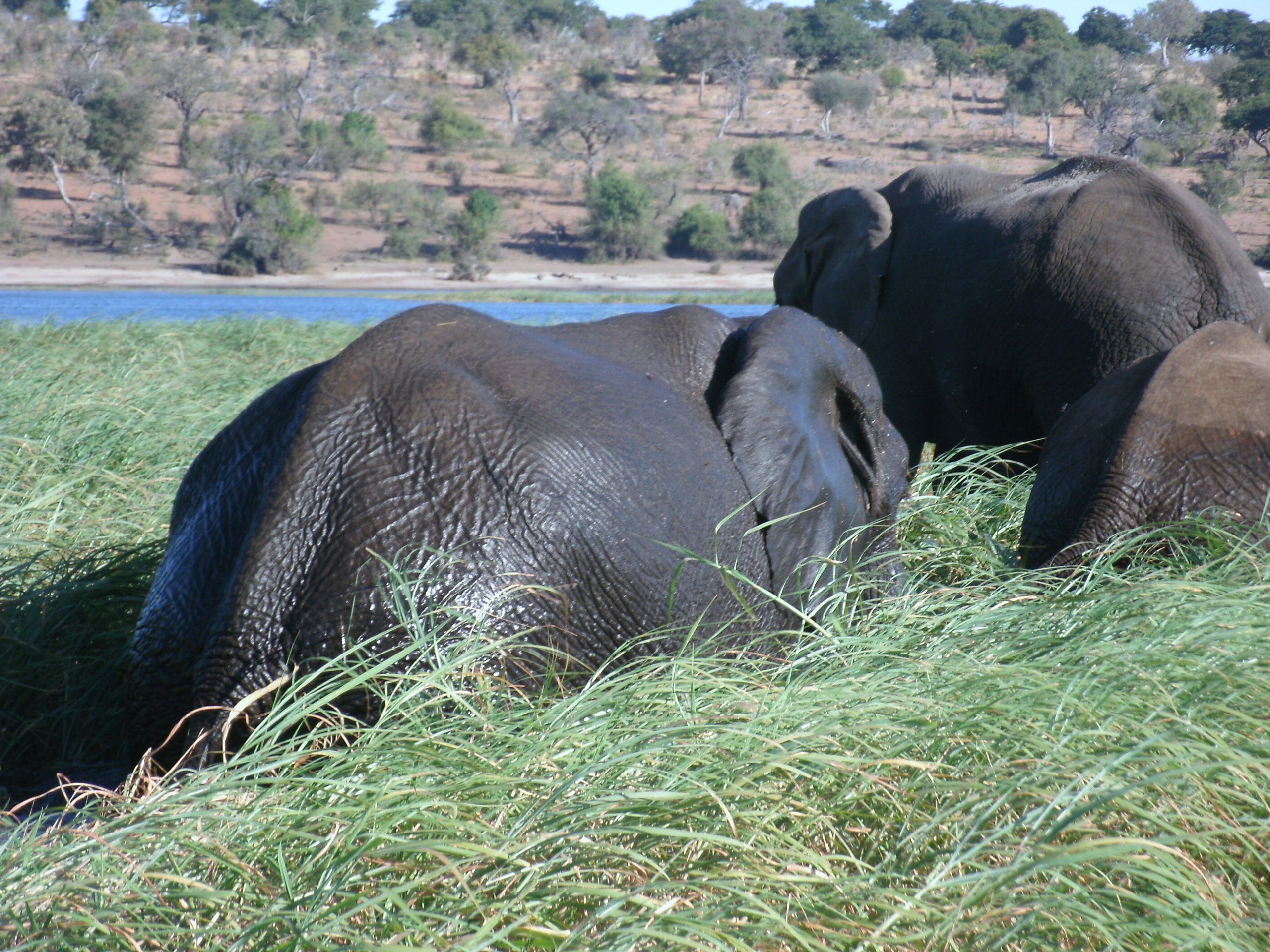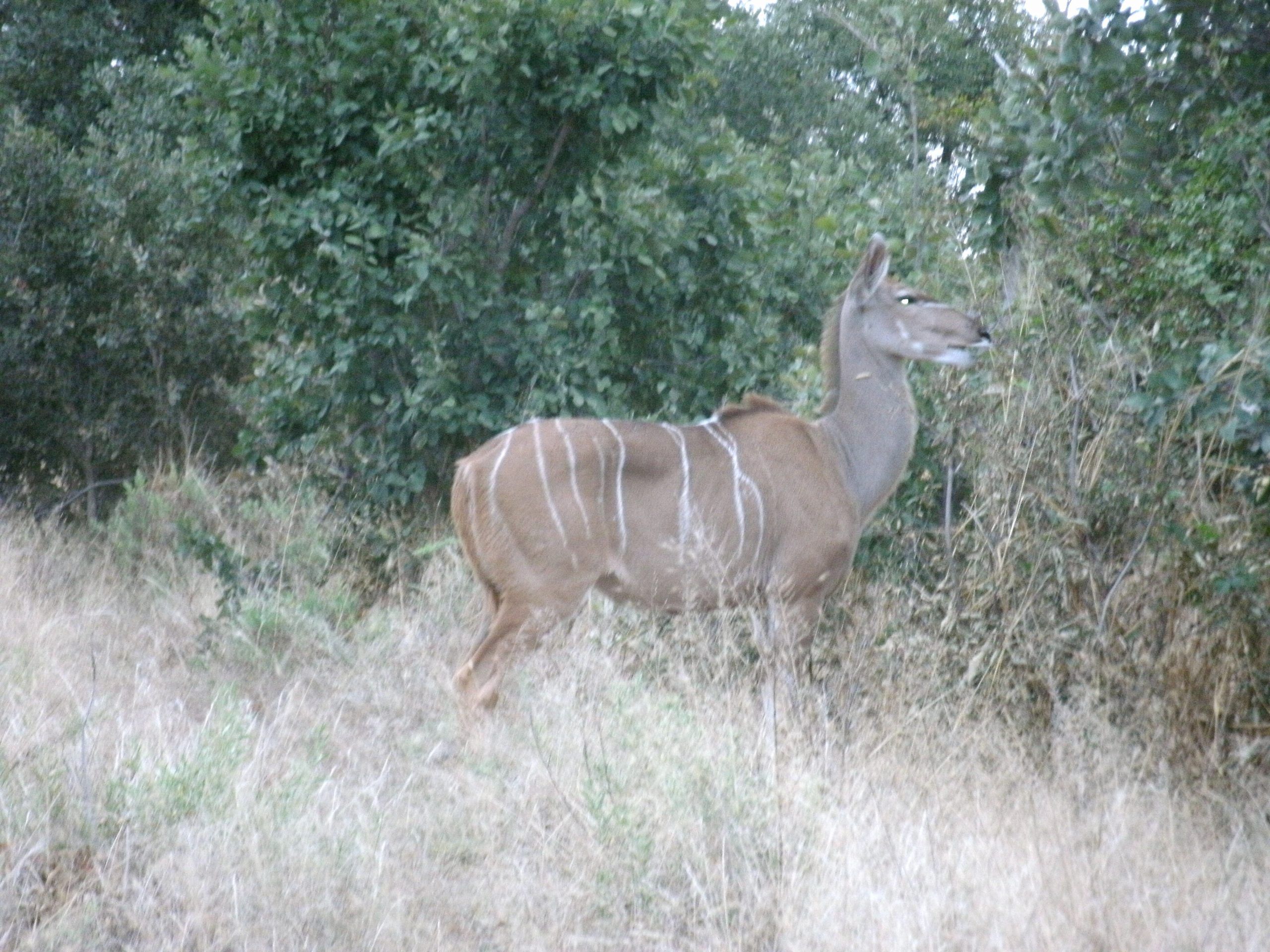 Besides elephant, northern Chobe is famous for its buffalo herds, puku, kudu, Chobe bushbuck and hippo. One could also hope to see: lion, leopard, wild dog, giraffe, waterbuck, zebra, impala, baboon, vervet monkeys, warthog, sable, roan, lechwe, banded mongoose, crocodile, leguan. Along the Chobe riverfront the terrain is that of a typical riverine ecosystem. Away from the river we have mixed miombo and broadleaved woodland that harbours rich avifauna.