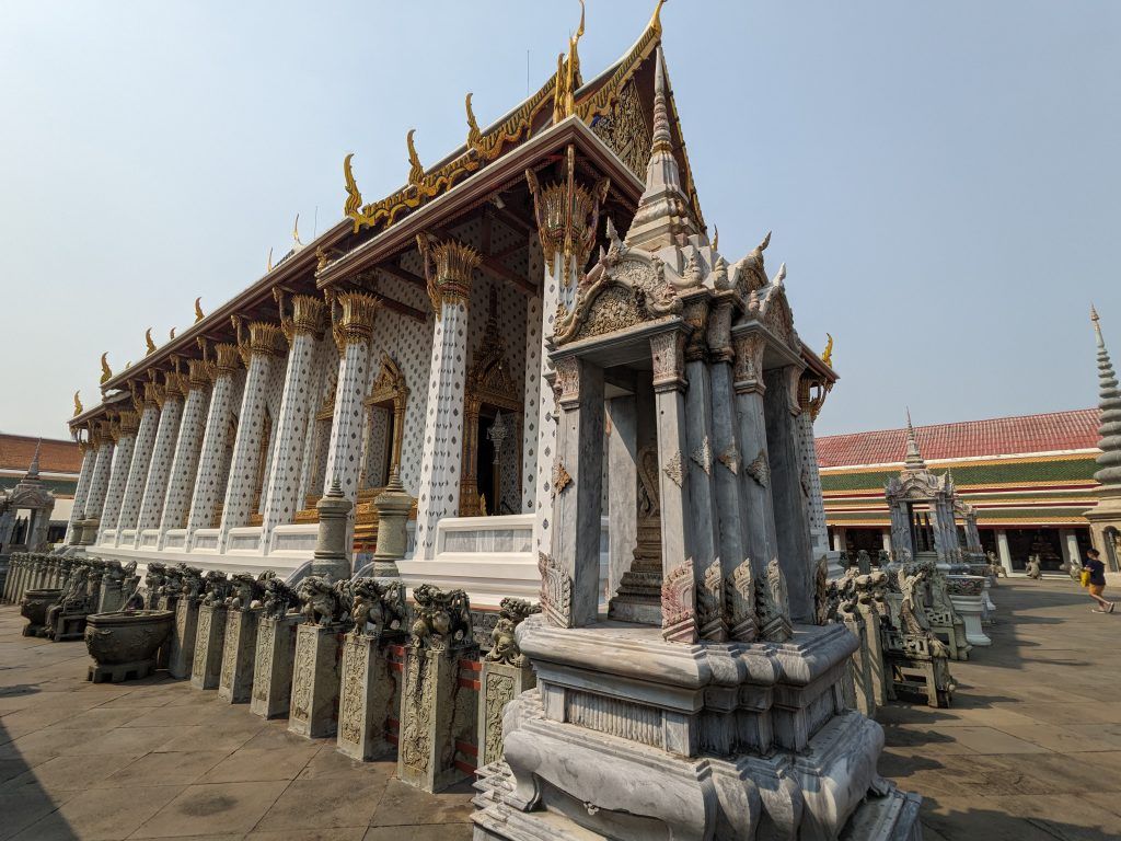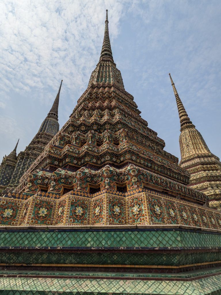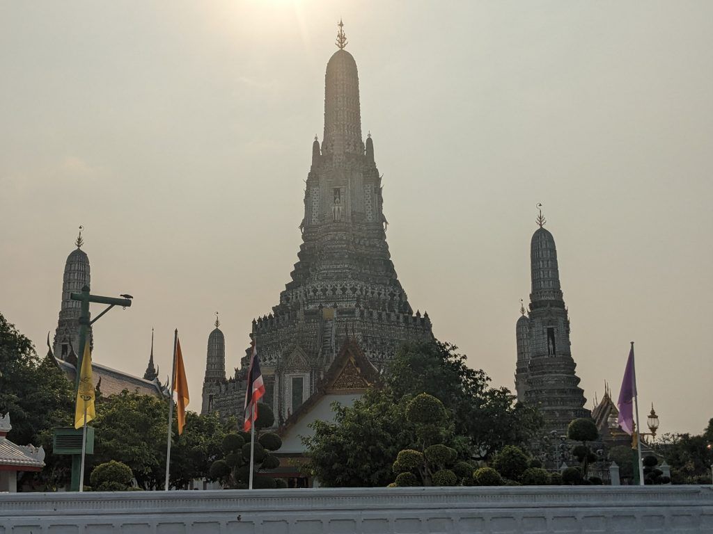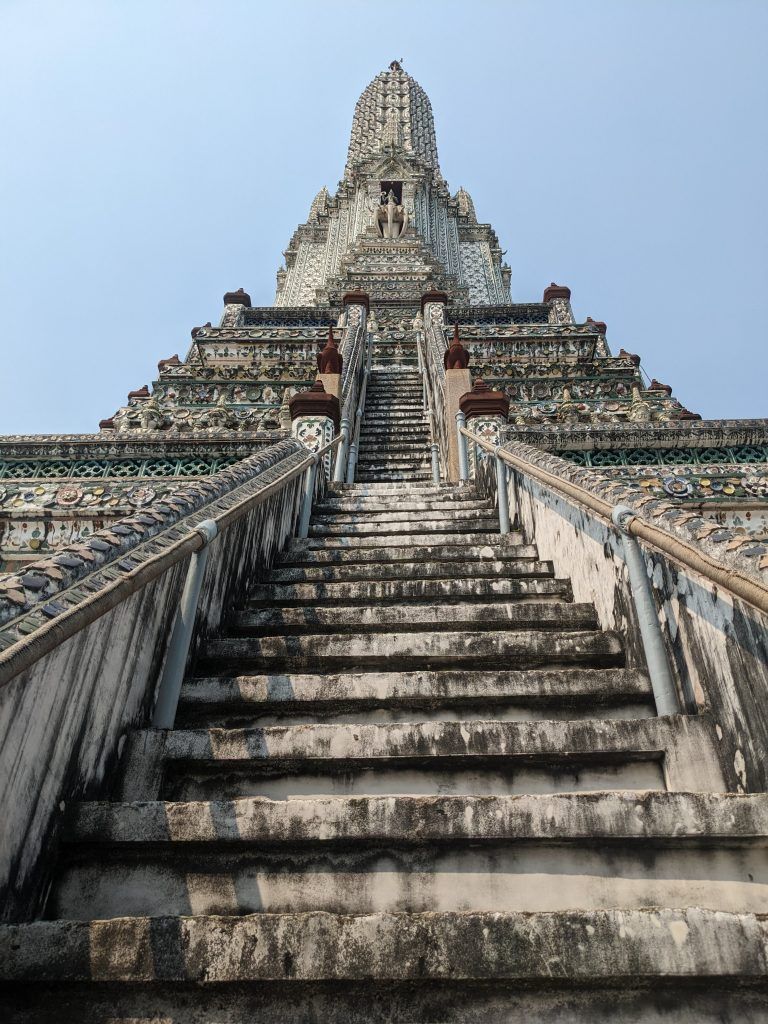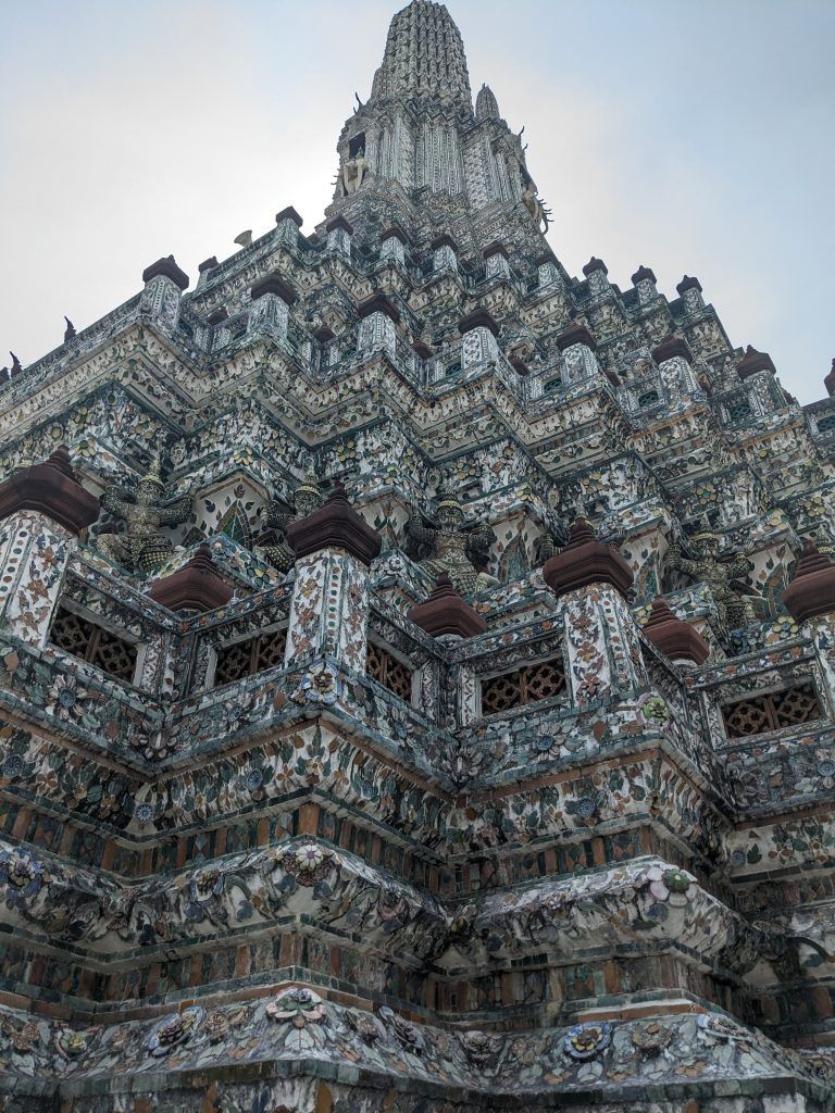 Wat Arun is known for its tall central prang with its intricate artwork.