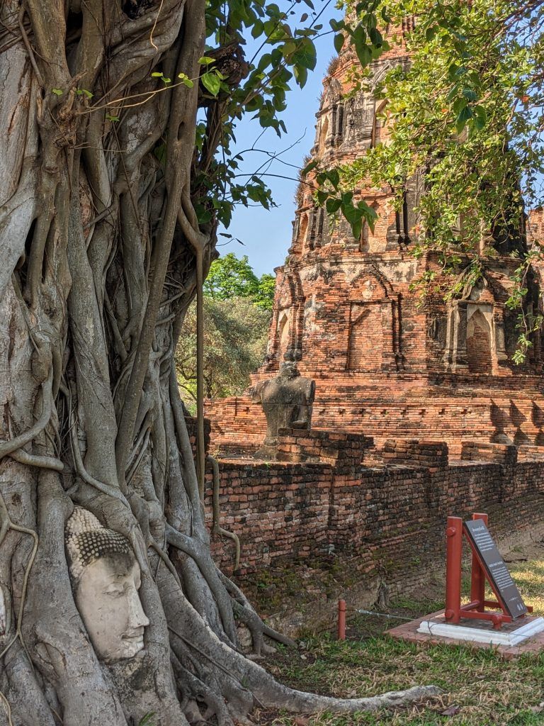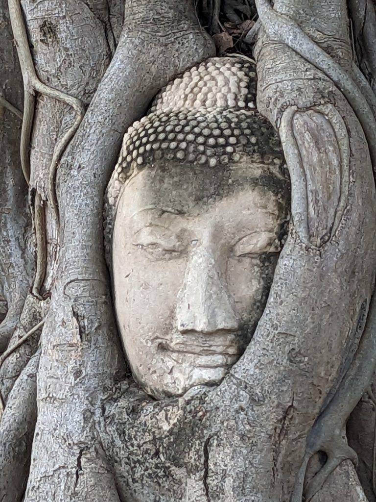 The most famous site in the city is actually a small Buddha head that a tree grew around.