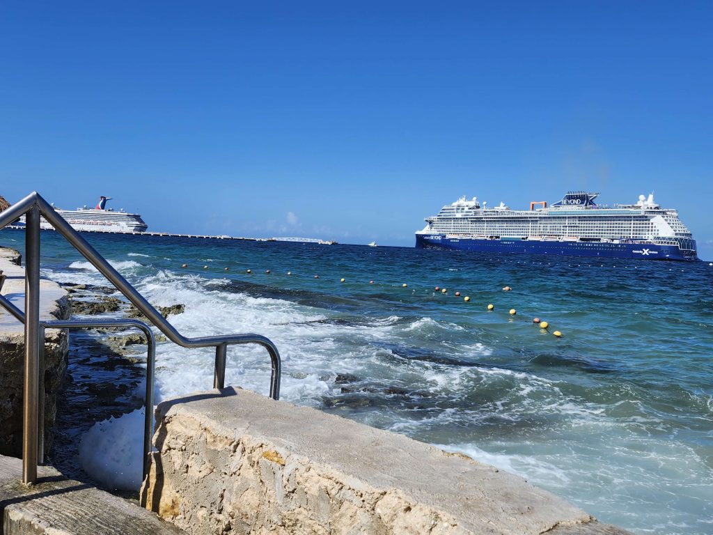 Funnily enough it’s located in the shadow of one of the largest cruise ship pier complexes in Cozumel.