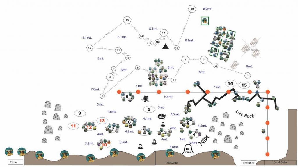 They have set up a series of platforms to grow coral on in a small area away from the formal marine park.