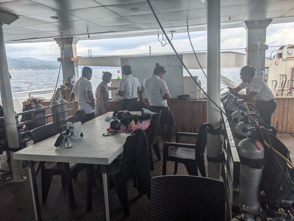 One of the guests had a drone. Here’s a nice shot of the boat in one of our beautiful, remote dive locations.