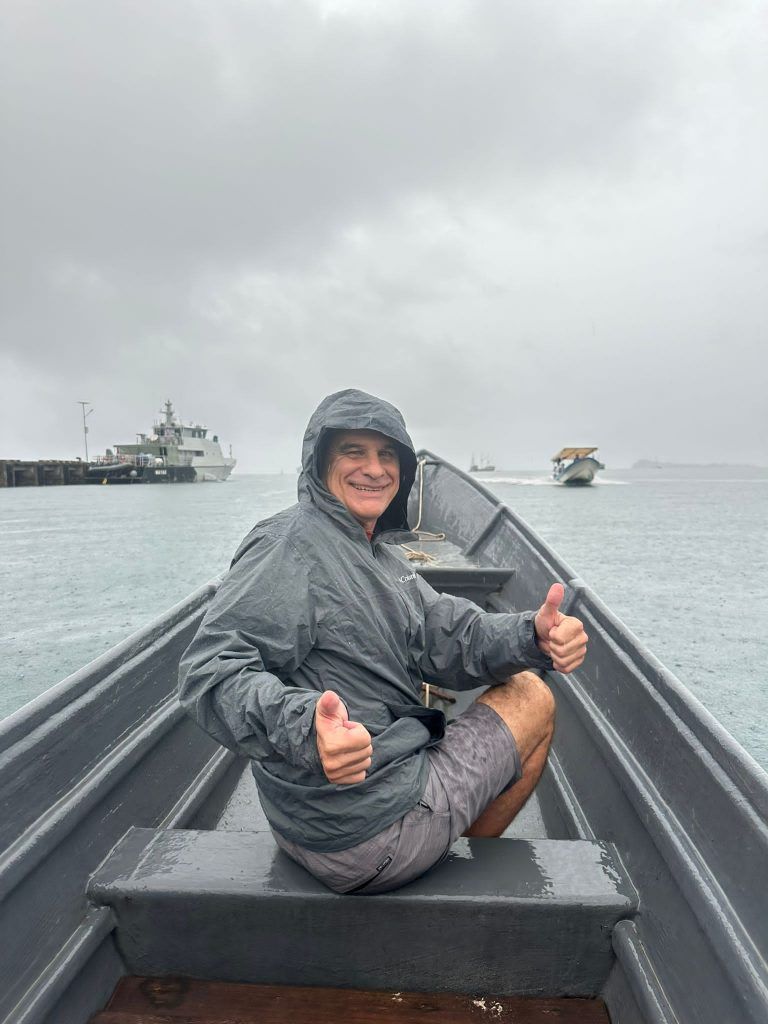 Getting to Raja Ampat is extremely difficult. I took a midnight flight from Jakarta that landed in Sorong (the capital of Indonesia Papua) at 6am, then took a 9am ferry to the island of Waisai. Finally I took a one hour boat ride in an open motorboat to Kri Island. Unfortunately it was raining profusely for this last boat ride and I got throroughly soaked in the rain.