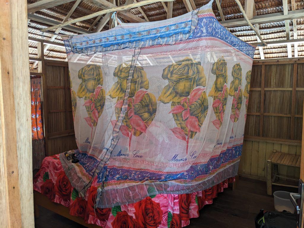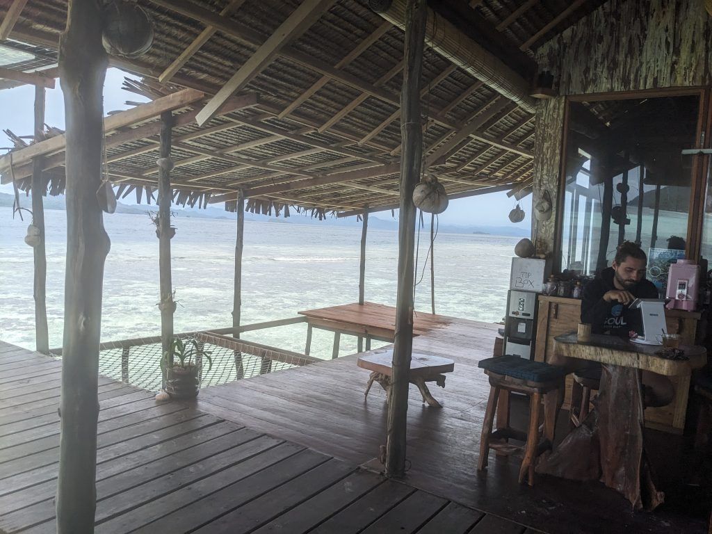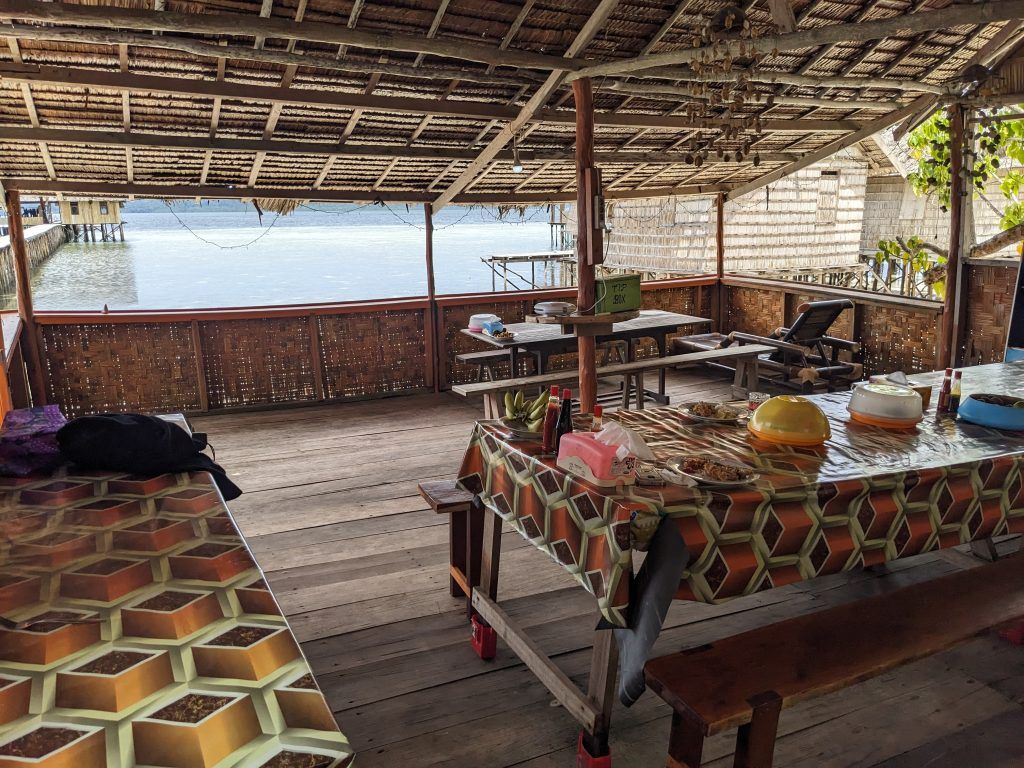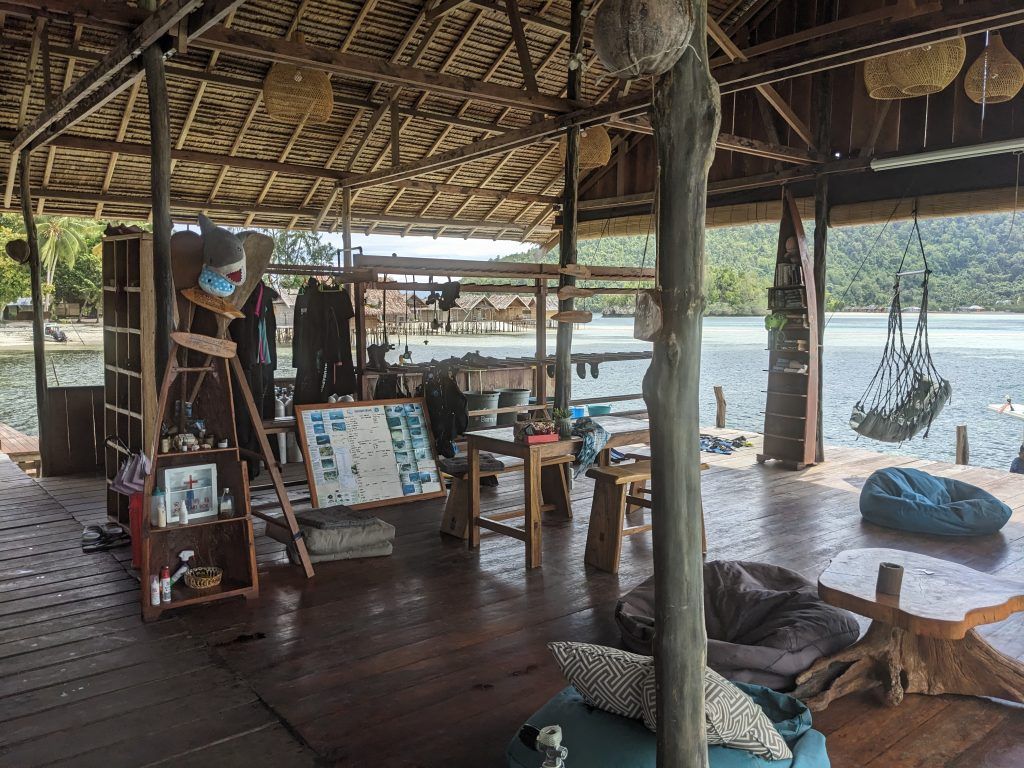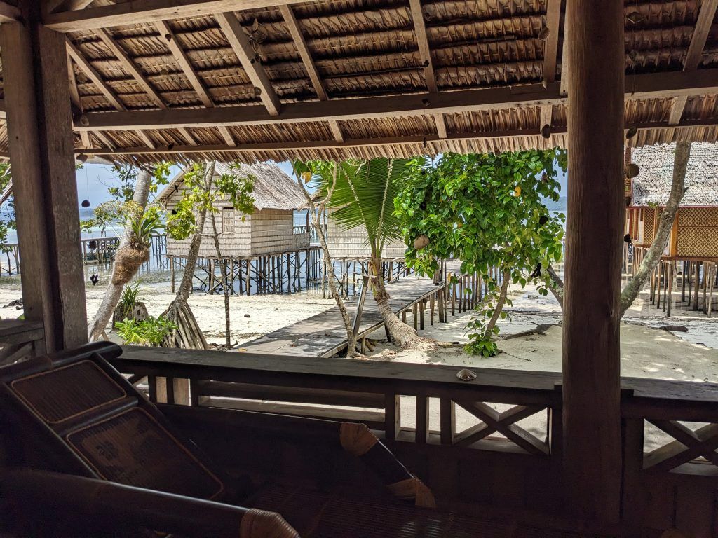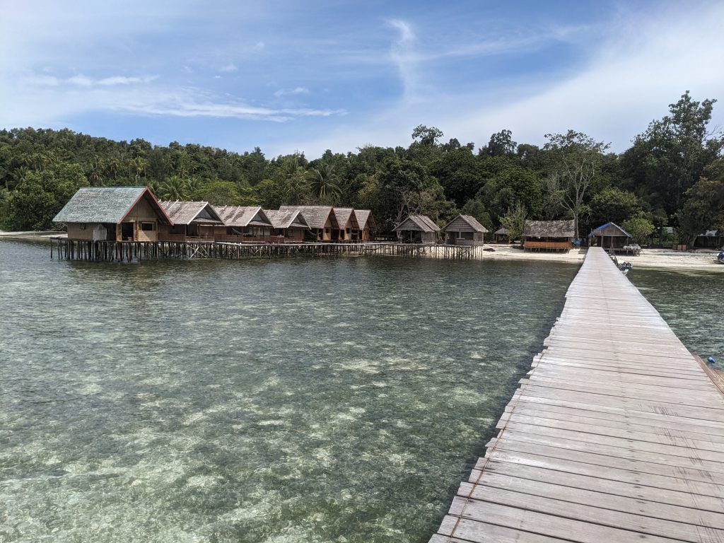 I stayed at the basic Yenbuba Homestay cottages on Kri Island. Most cottages were out on the water with a shared bathroom on the beach.