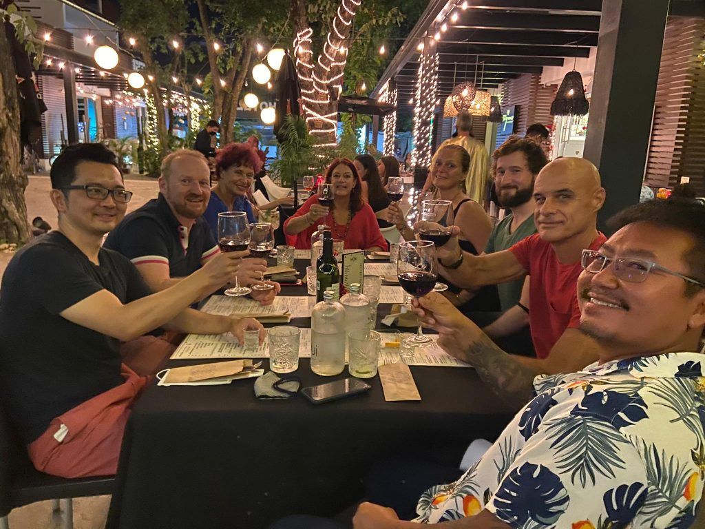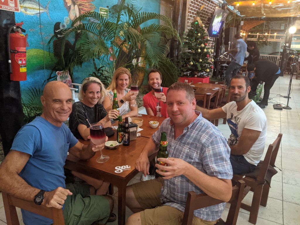 Some of the Aloha Paddle Club gang having beers after diving at Casa CenoteOne of our Friday evenings at Lido Beach ClubThanksgiving dinner with local friends and my brother and nephewChristmas Eve dinner with some of the Lido Beach Club groupOne of the nights we won the Tuesday Trivia nights with our complimentary drinksWatching the Super Bowl at a rooftop bar with Katherina, Clint, Q, Ryan and Katherina’s momThe amazing Isreali partners (Omar and Ofir) of Barefoot Divers in Cozumel and Memo, the indomitable dive instructor I did my last few dives with. This was after my final dive with them. A nice goodbye dinner with Paulina, Rhonda, Katherina and Clint from the Lido Beach Club group.Our little goodbye dinner with my dear friends Julia and Erik Rindle, the owners of Dive Shop Mexico in Playa. A goodbye dinner with the Trivia Night gang: Lena, Christina, Phil, Ryan, Ethan, and a guest appearance from our Kiwi cryptocurrency god, Nacho.