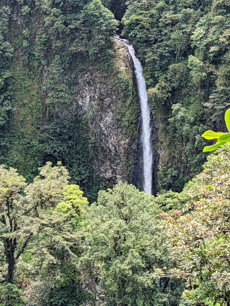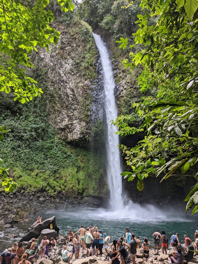 After hiking around the volcano most of the group journed onward via our van to the La Fortuna waterfall. It drops about 70−75 meters and is fed by the Arenal River. No one was actually allowed to swim directly under the falls, but there were some wonderful, cool pools nearby that we could relax in.