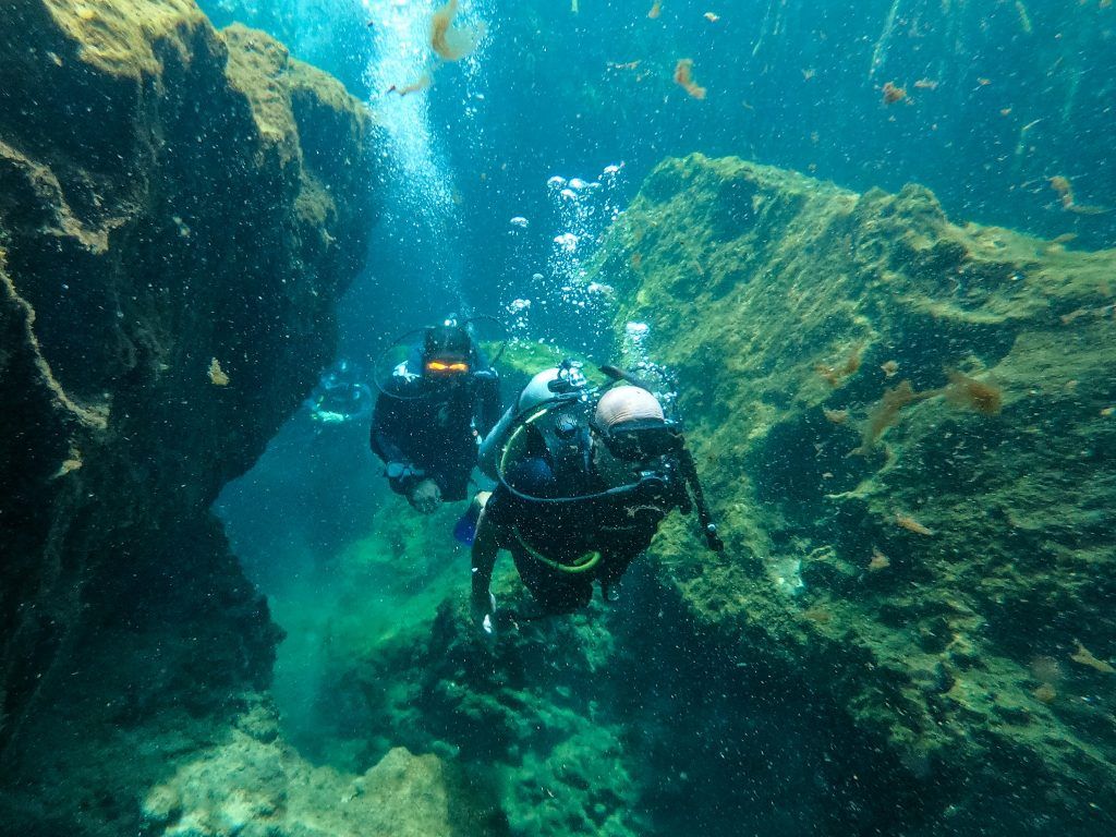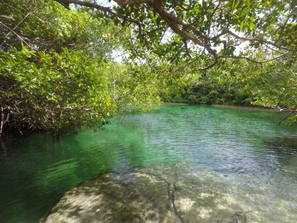 I had a chance to experience my first cenote dive last weekend. Cenotes are fresh water pools that are dispersed all throughout the Yucatan Peninsula. My dive was in the Suceo Casa Cenote down the coast near Tulum. It was a unique cenote because it emptied out into a tunnel below a road into the ocean, so there was a mix of fresh and salt water. You could see where the clear fresh water merged into the more brackish salt water and the visibility could go from spectacular to almost non-existent in a few meters.