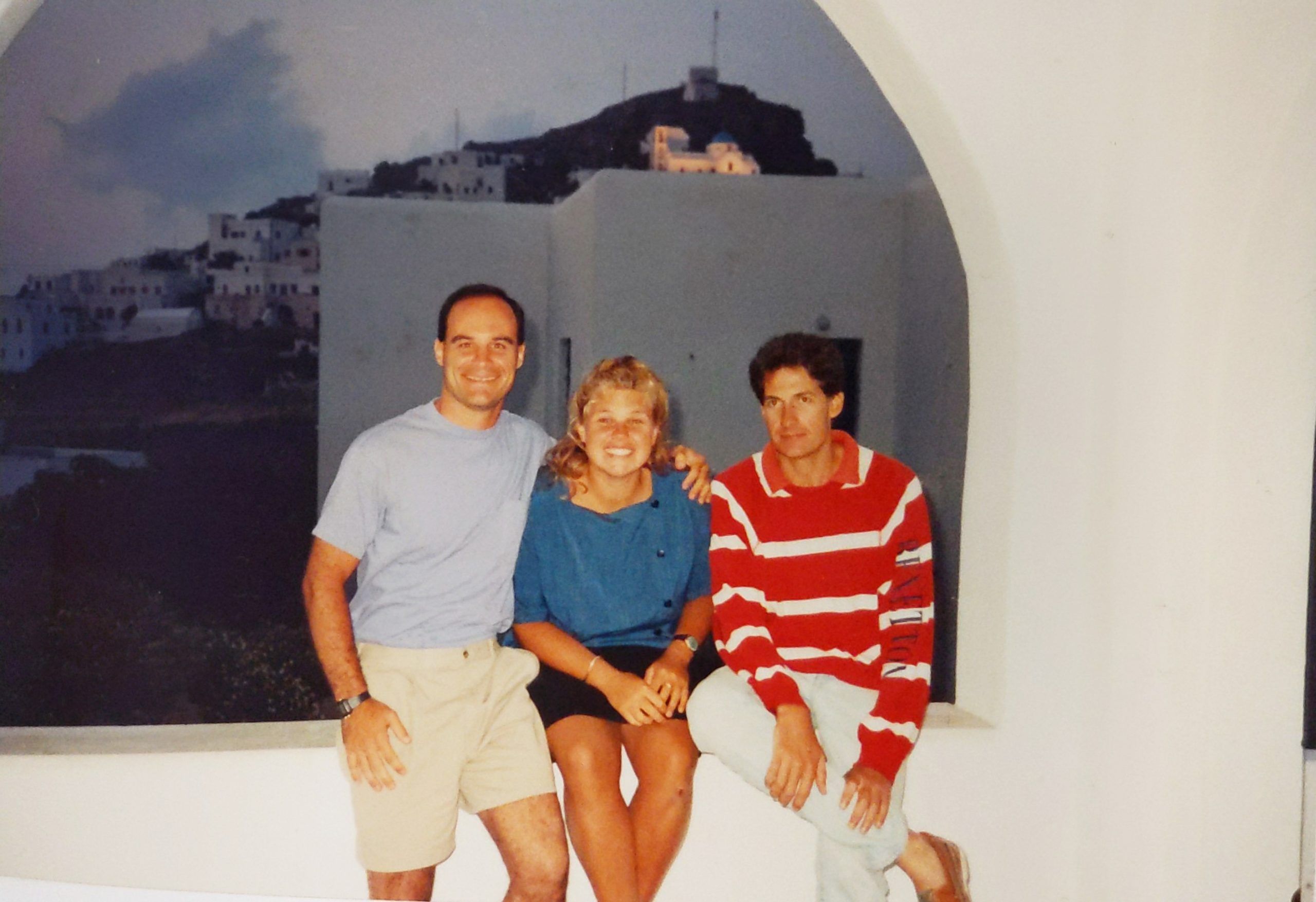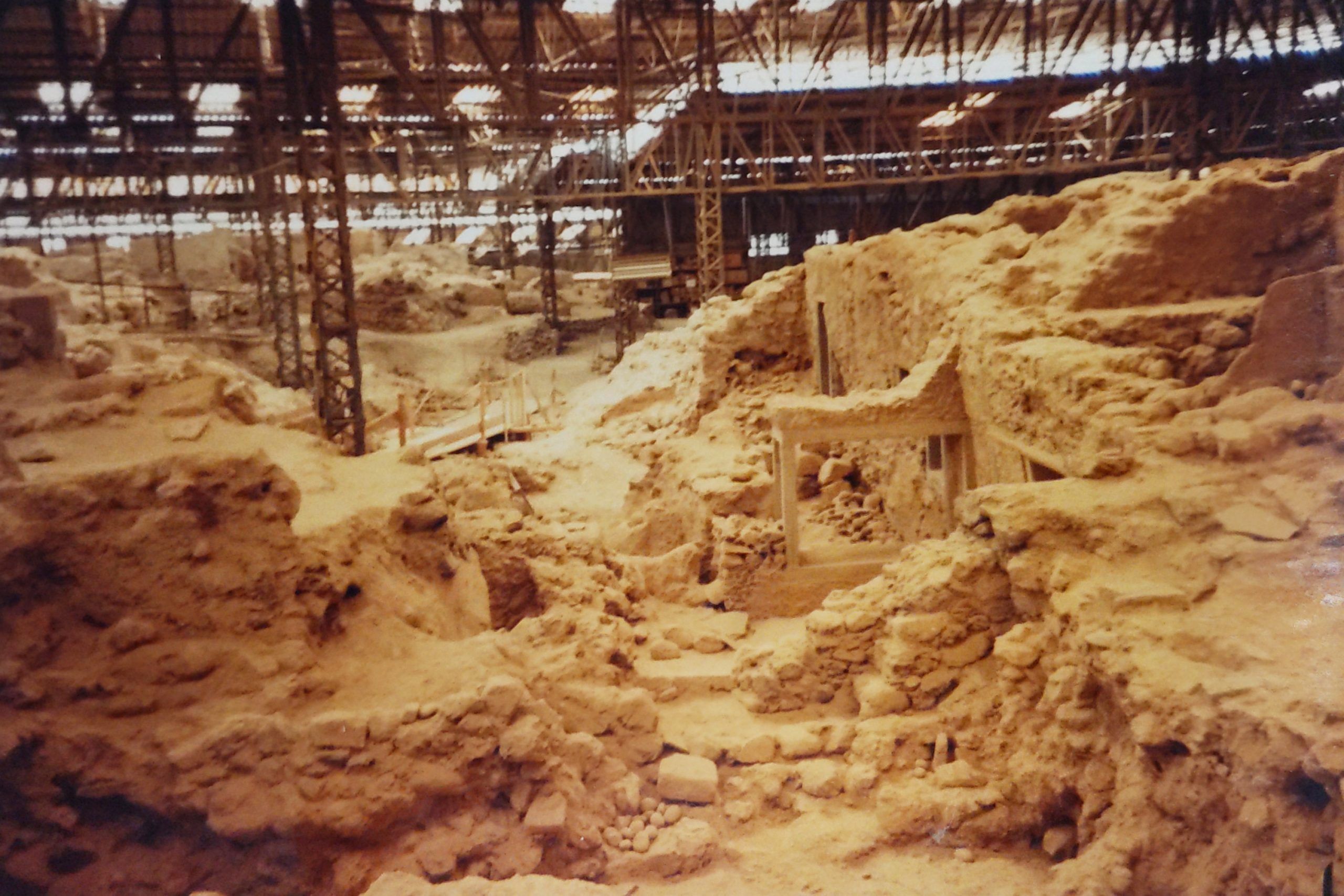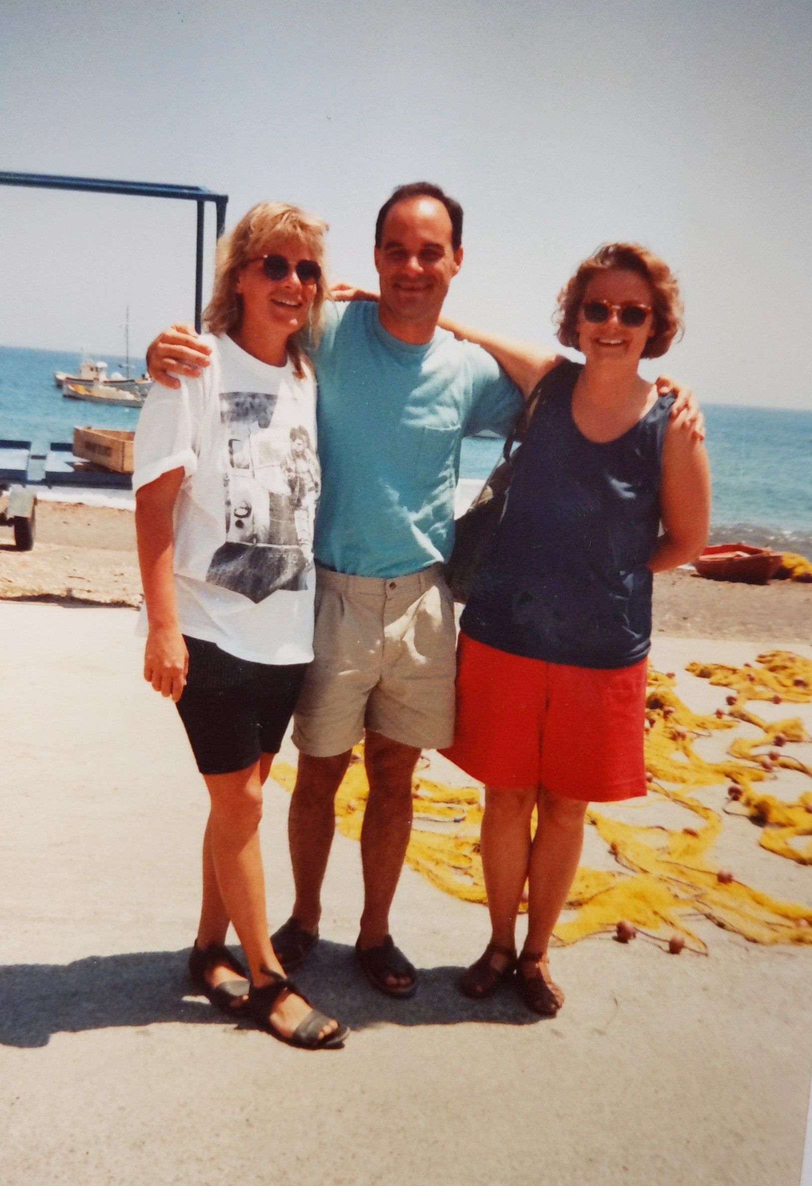 5/16 – Went to the beach, played volleyball with a bunch of Australians, watched them cliff dive and then got into some two man volleyball. It was me and a West German, Ralph, against an American and a Greek. Lost all three games, but had a blast. Took the boat to Santorini. Waited at the cold dock, the boat was half an hour late. Then came very close to throwing up on the small fishing boat on the rough seas to Santorini. A lot of people were getting sick. Ulrika and her friend Tina were on the boat and we ended up staying in the same hotel, after walking up a ton of stairs from the boat dock and dodging piles of donkey dung in the dark.