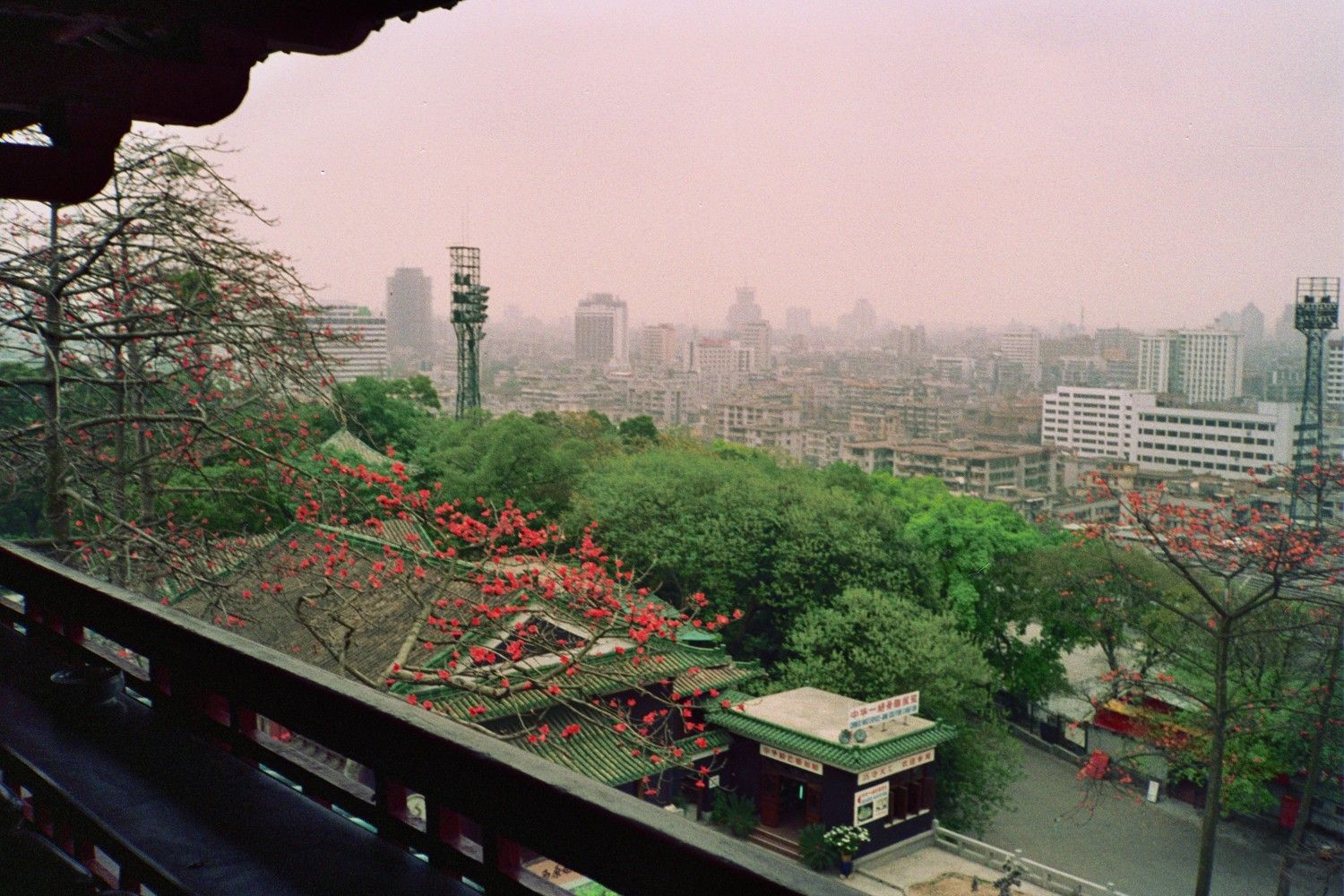 4/8 – Went to a university so Glenn can find cheap housing. Beautiful campus. Met an Australian – Cameron from Brisbane – who was on a one year scholarship to study Chinese. Students in China studied with rote learning. Good fundamentals but little creativity or problem solving ability. The food in the dorms was horrible, but Cameron only had one roommate, in Chinese dorms there are eight to a small room. The students have very little social life and high academic pressure. We all took a ferry across the river and had lunch at a McDonalds. Cameron is sick of Chinese food. Glenn and I took a cab to a rail car/ski lift which took us to top of White Cloud Mountains. No big deal – new temple being built, smoggy views of Guangzhou. Ended up getting ride down hill with army soldier and French lady and small child. Took cab back through slow, rush hour traffic. Met Tang, Su and Su’s girlfriend, also Su, for dinner. Su needed a favor – in Jan a US businessman from “Hawaii” wanted 300 rugs. Su has not heard from him since, even though he sent three faxes. Turns out businessman is from Louisiana. I ended up calling his office and leaving a message with his secretary to contact Su before April 20, or the whole deal is off. I doubt anything will happened, but all the Chinese were very happy.