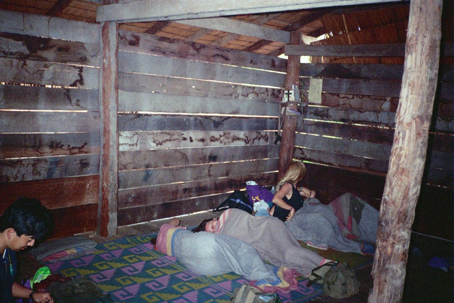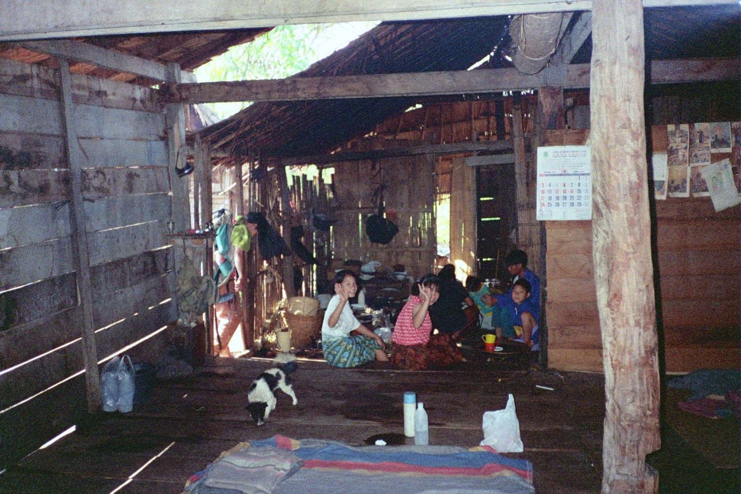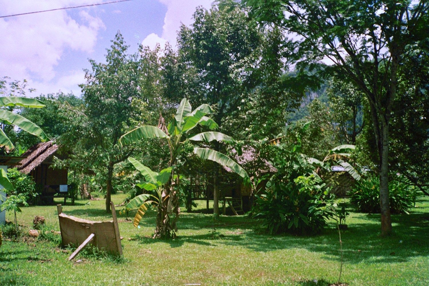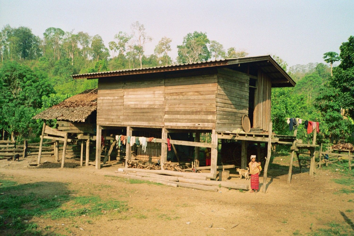 4/13 – Arrived in Chang Mai to discover that Rose’s Guest House didn’t know about my four day trek. They scrambled to find someone else. We all got soaked from the New Year festivities leaving the city, as everyone along the road had squirt guns or water buckets, and had a long, wet ride. Found Rose’s only paid my guide for a 3 day trek. He promised to sort the thing out later. We ended up at a small village and walked all afternoon and early evening through beautiful scenery. Arrived at a village just at dusk. I bathed and washed my clothes in a pond in the dark. Had a rice and vegetables dinner and we all crashed early.