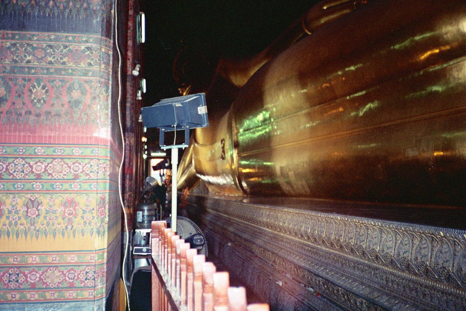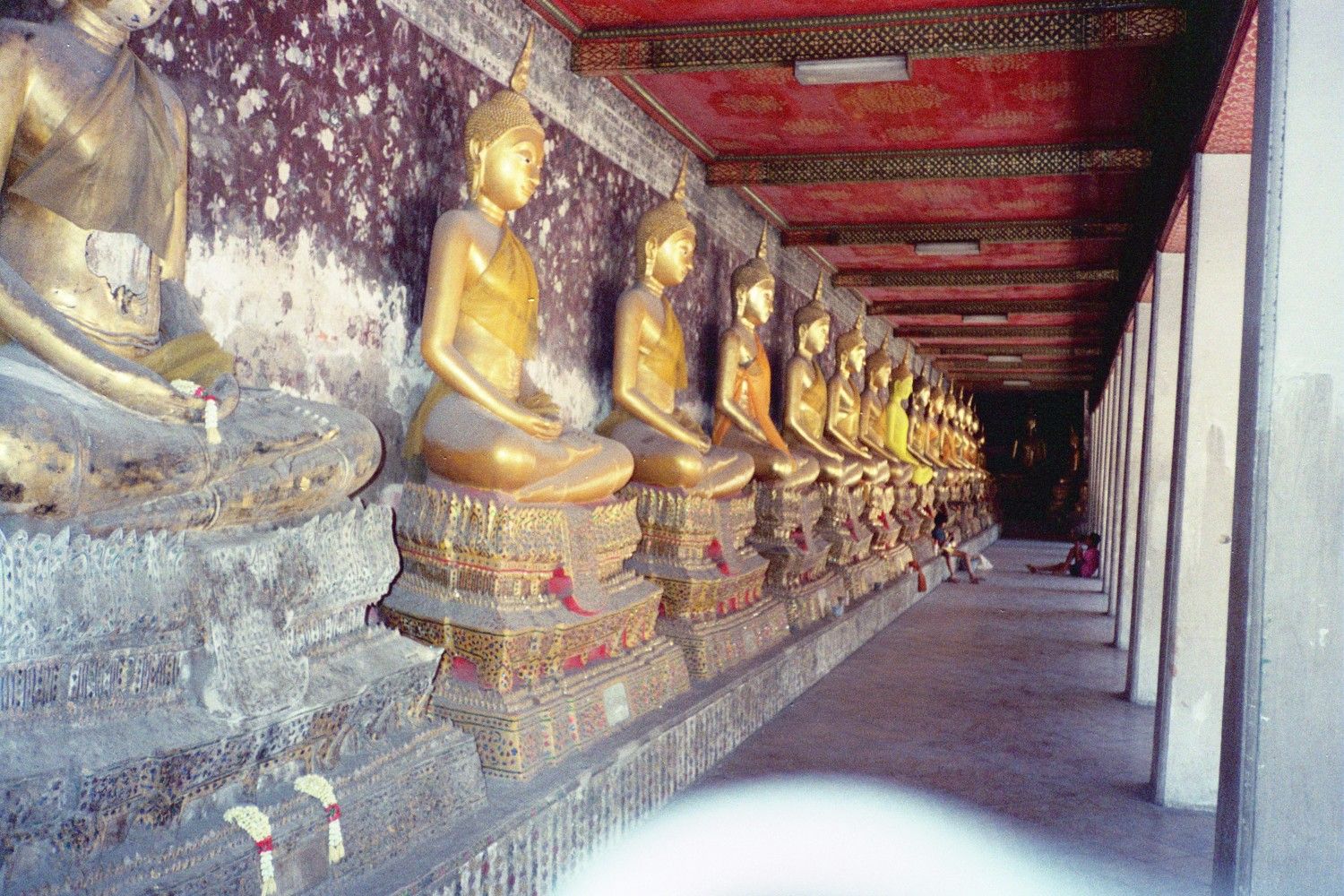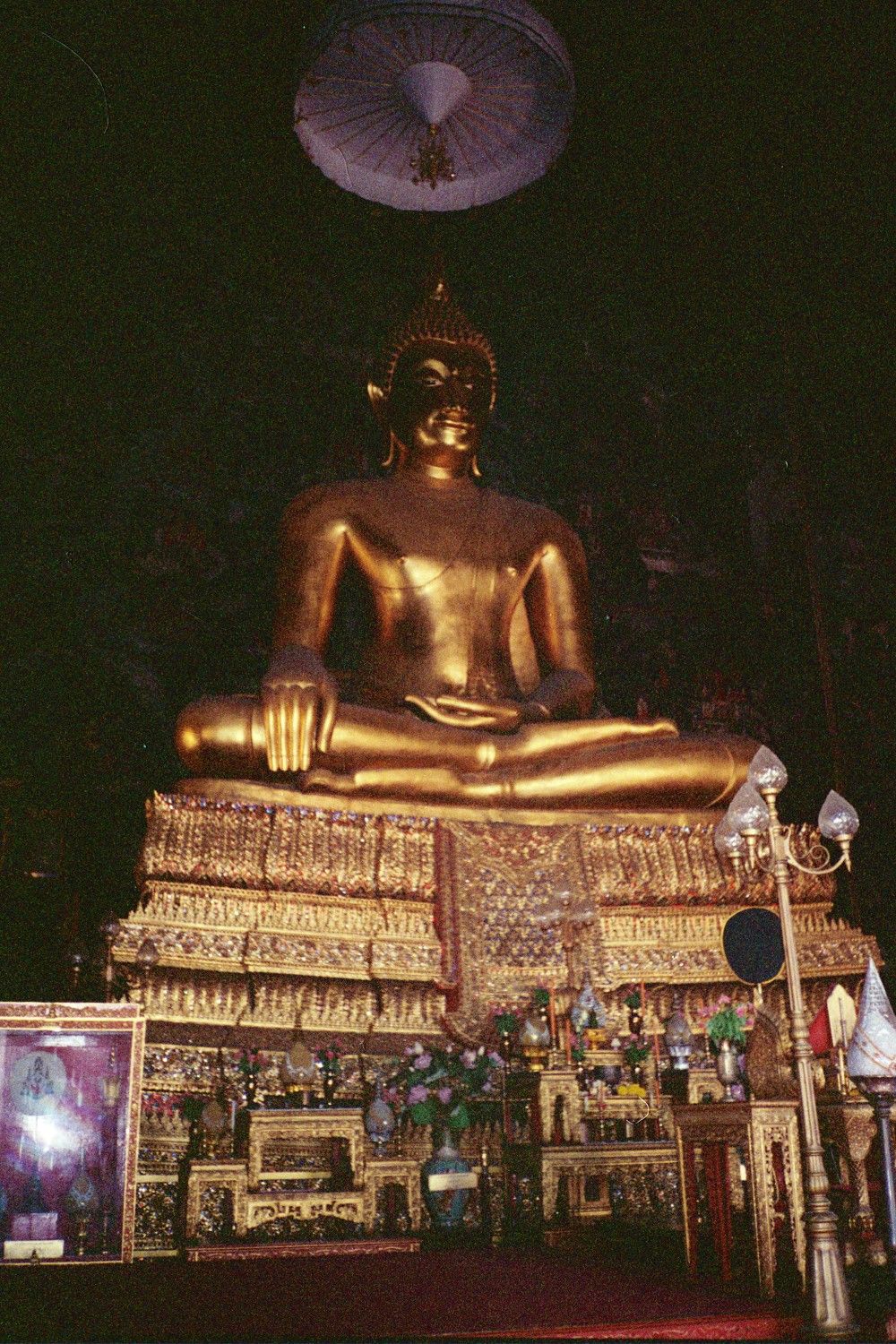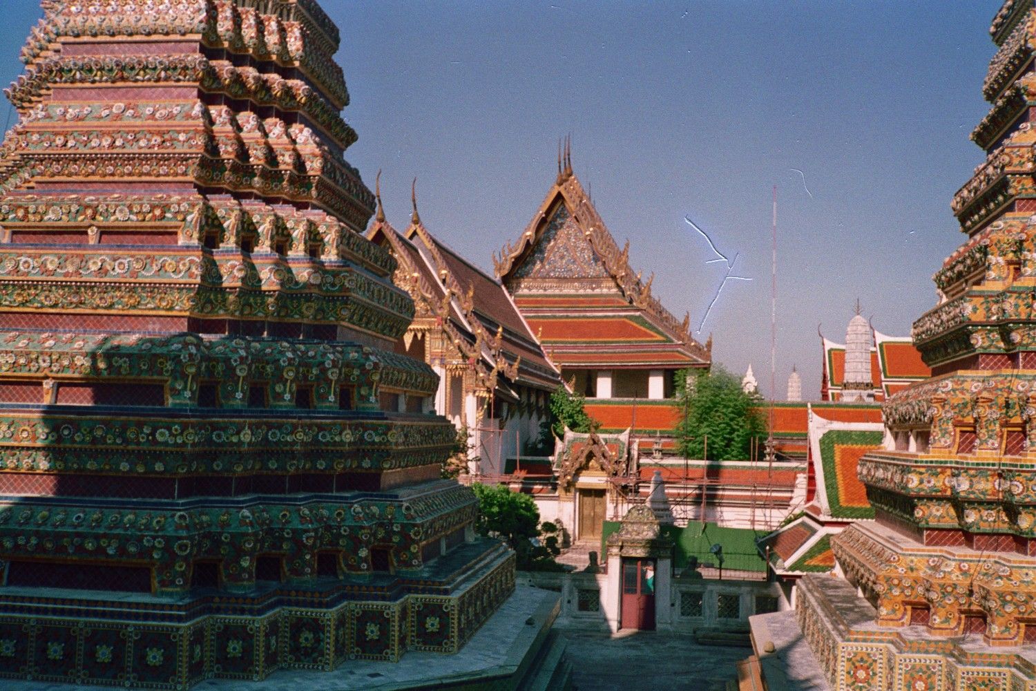 4/12 – Hung out at guest house in morning, then took backpack to travel agent where I booked my trek. Wandered around Bangkok. Got picked up by tuk tuk driver who would take me to a couple of temples for only 10 bhat. Turns out he took me to one beautiful temple, then an expo center where he got a free gas coupon, then a second temple where he ended up leaving me. I laughed at my first rip off, then took a bus back to Main Palace, which was closed. Wandered around a huge nearby wat for a while, then took a tuk tuk back to KoSahn to take night bus to Chang Mai. Thai New Year’s was in full swing and I got soaked with water walking down the street. Dried my clothes out, along with everyone else, on the bus that night.