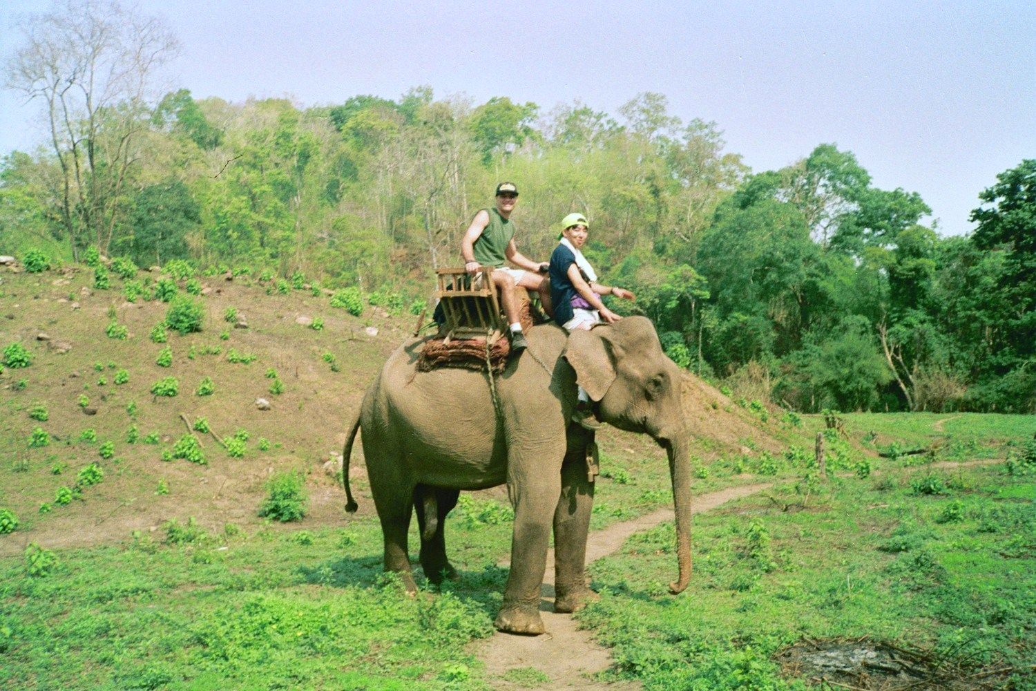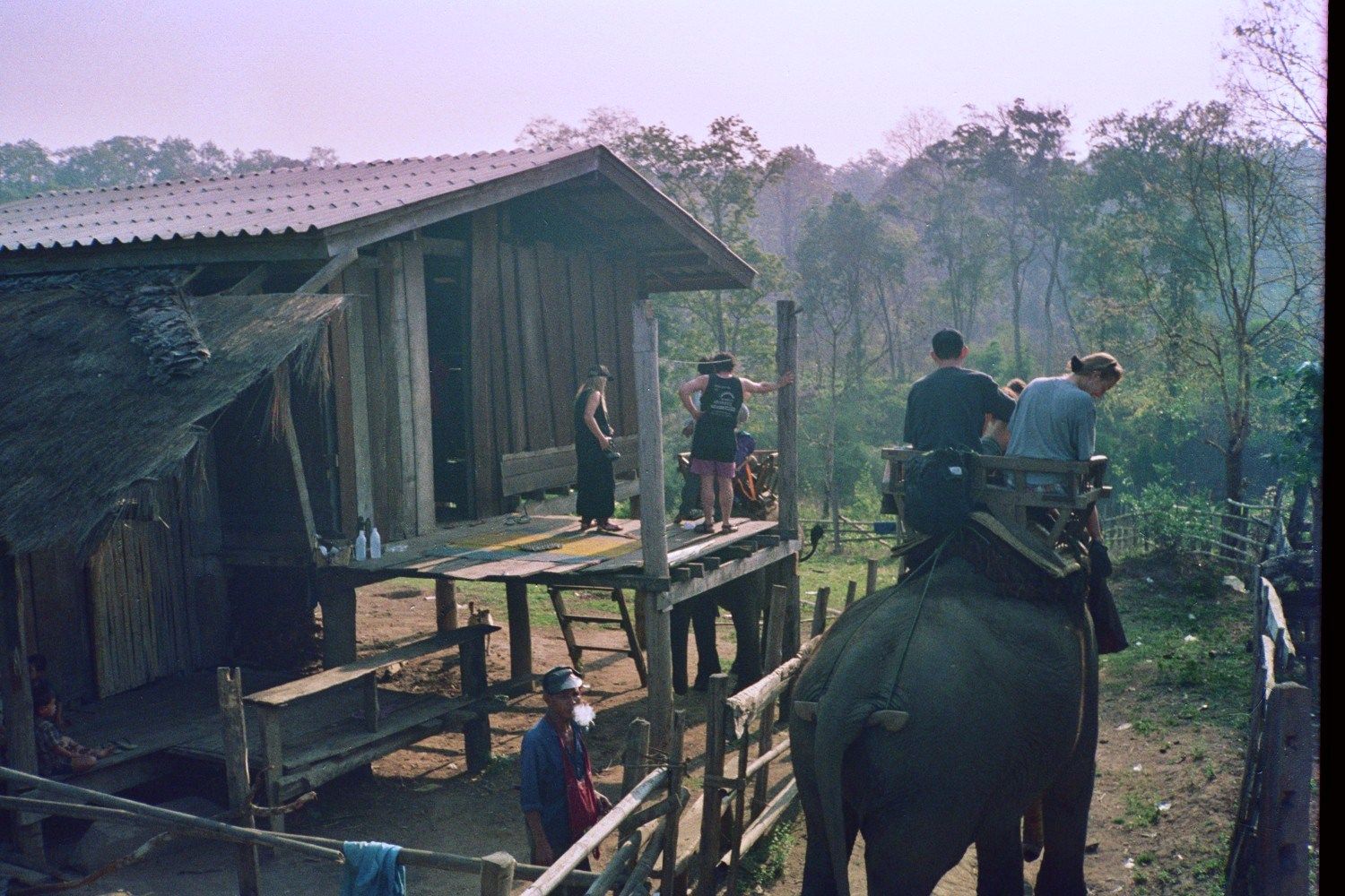 4/14 – Within two hours of waking and eating a troop of elephants entered the village and we got on and started riding. I was on the last, and most temperamental elephant with a Japanese guy. We rode for about two hours; it was great. Ended up at a village near the river, then started 3 hour raft ride on flimsy, flat bamboo rafts through more tremendous scenery. Afterwards, walked for 2 hours to a village of the Akha tribe. Ate lunch there and hung out all afternoon. Went for a walk with Jack, from South Africa and entertained all the kids we saw. We all relaxed and enjoyed the ambience of the village and ended up staying there that night.