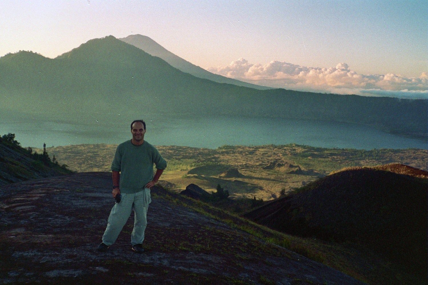 5/9 – Woken up at 3:30am by guide. Joined a German couple and we all hiked to the top by flashlight. It was a long and steep climb and to over two hours. Beautiful sunrise. The sun was an orange ball of fire in the distance and made a great silhouette of nearby large mountains. Behind us were two more smaller craters and a huge crater field of barren dried lava. Climbed down very steep path to second volcano where our guide cooked bananas and boiled eggs for us in the small steam holes. The ground was warm from the geothermal energy. Walked down to third crater and then back to Surya by 9:15. Had breakfast, talked to a Swedish couple, then the British couple before they left, then Allison, then a British girl traveling for over a year with her boyfriend. Showered, washed clothes, then went for lunch. Local girl kept asking me where I was from and if I was single. Went back and took a well-deserved nap. Read for a while, talked to some people, had a great fish dinner at Surya and discovered how good their hot chocolate was. Went to bed around 9:30 – was still tired.