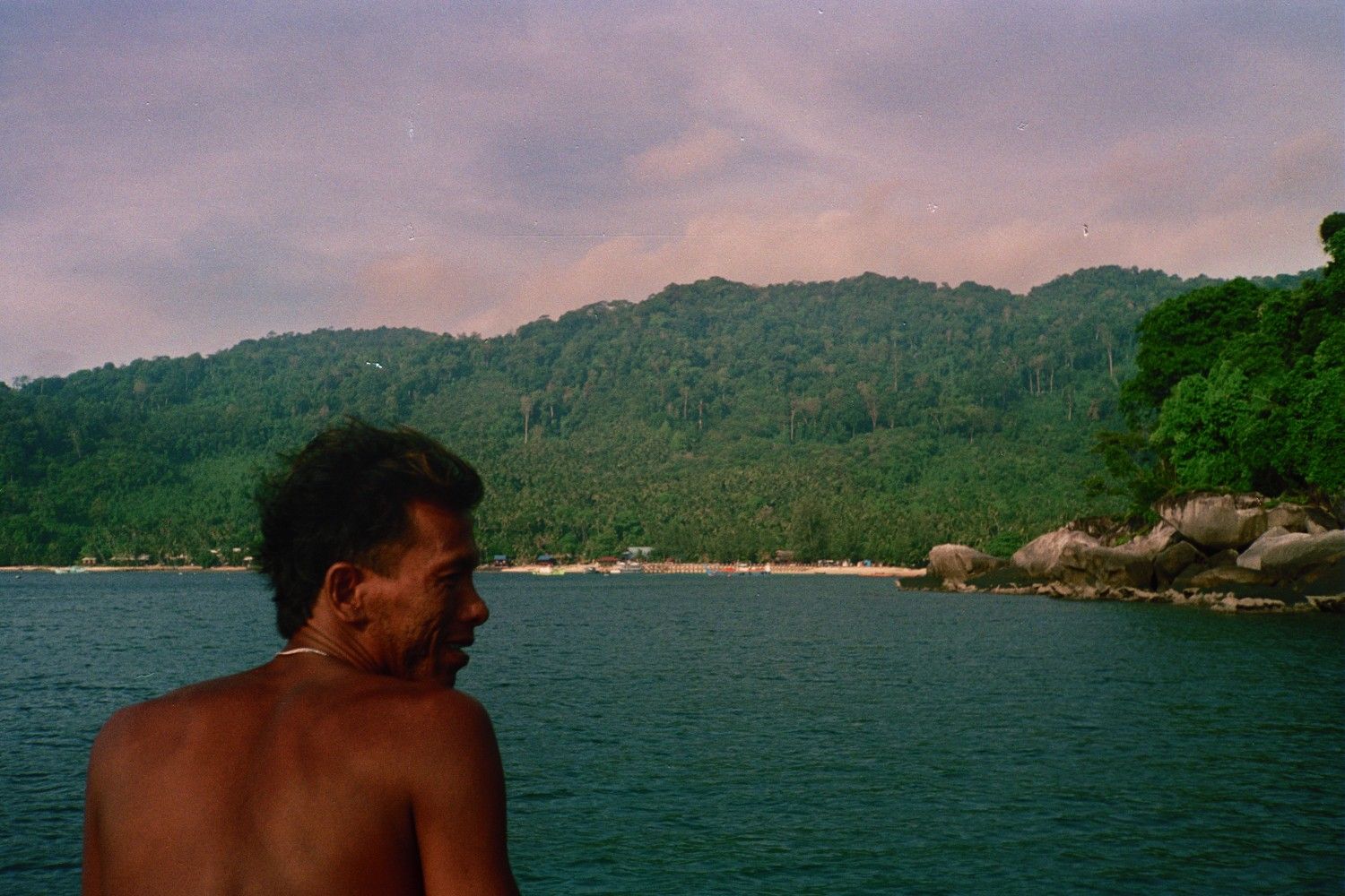 4/24 – Walked through dark early morning streets of Kluang as prayers were being called out eerily from various minarets. Had breakfast with some locals across the street from bus stop. Took 7am bus to Mersing and just caught 9am ferry to Tioman Island. Arrived at Kampung Salang at noon and went with two Brits named Ian and Simon. Found a place, sorted out diving info for tomorrow, then had a long lunch. They were both traveling independently for along time and joined up a few weeks ago. Smashed my toe before dinner – felt like I may have broken it – time will tell. Met some Malaysians who just caught some fish and they invited us for a fantastic fresh fish dinner. Even watched them plop down a couple of eyeballs.