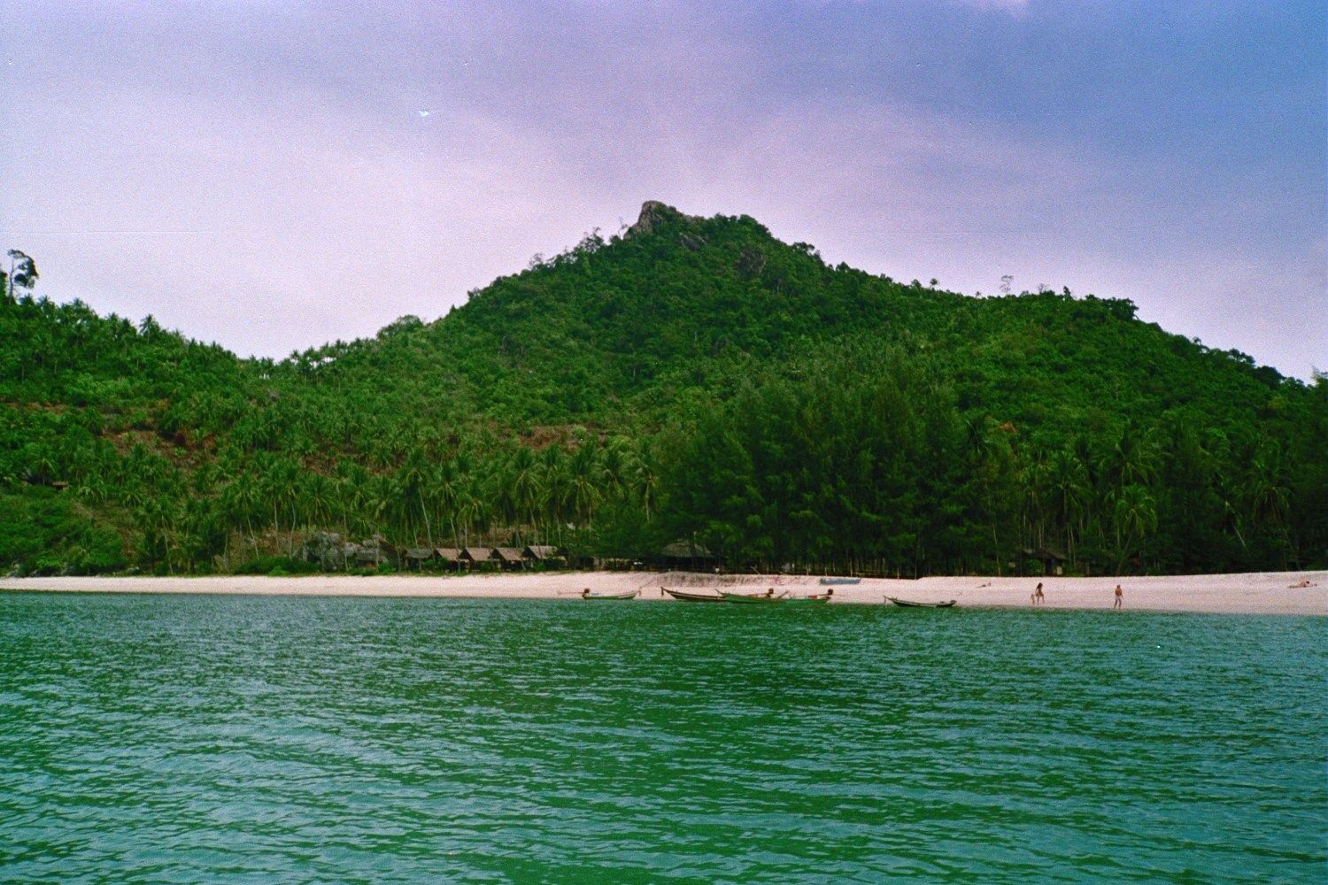 4/18 – Arrived in Surat Thani and took boat to Ko Phangnan island. It was raining. Met other people in pick up truck/cab and ended up at beautiful beach only reached by a small boat ferry. Very peaceful place. Played a little volleyball and just hung out.