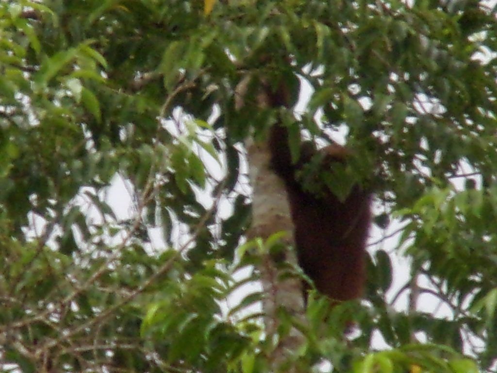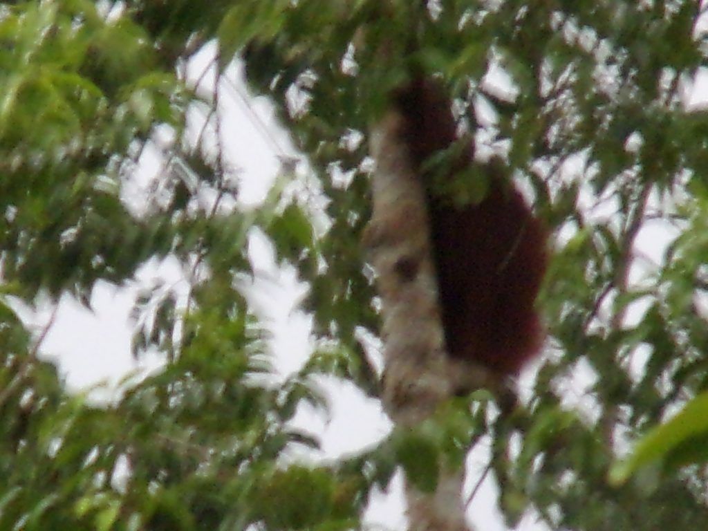 The shyest monkees are definitely the orangatangs. Spotting them in the wild is incredibly difficult. We saw a mother and child in an incredibly high tree back from the riverbank. The best pictures I could get were these two fuzzy ones.