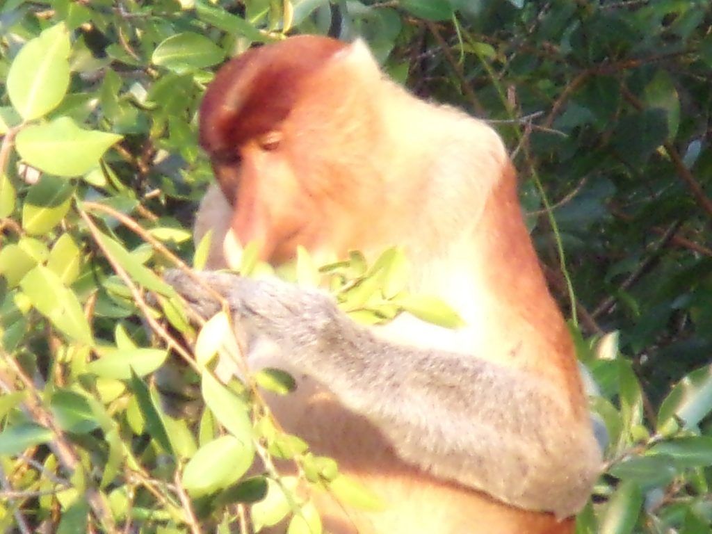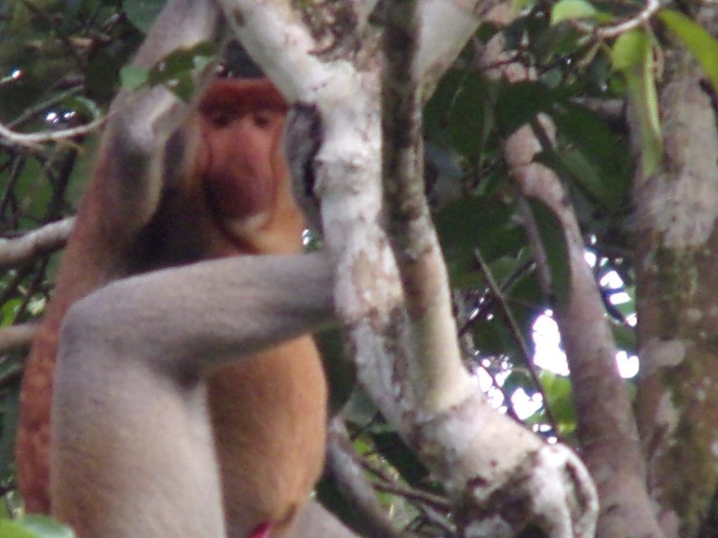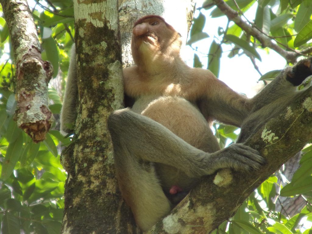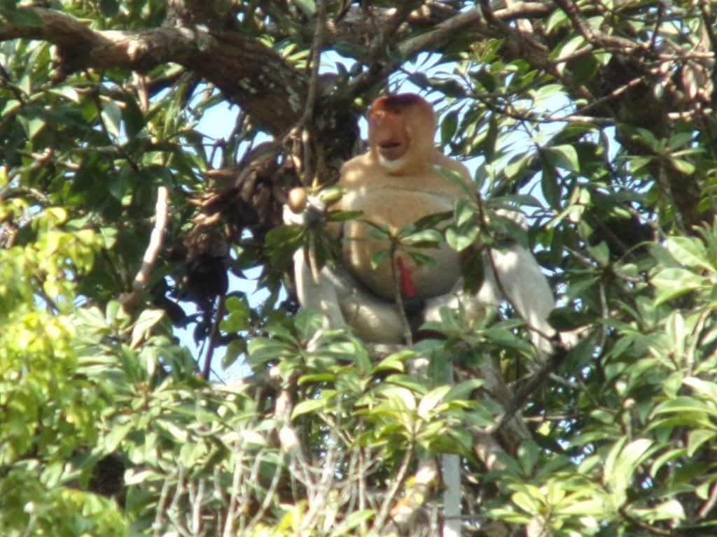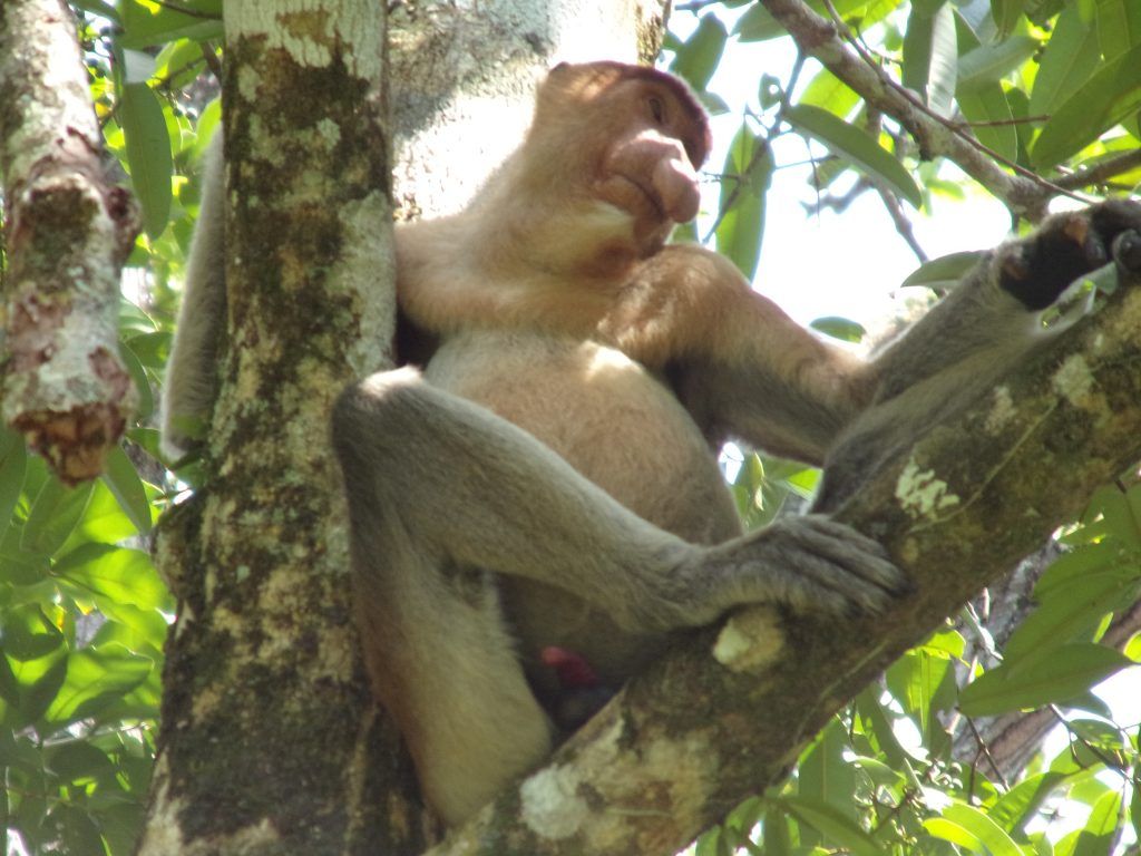 The coolest monkees in the jungle are the male proboscis monkees, with their long Jimmie Durante style noses, large pot bellies and the “red chillies” protruding out from their waists. And yes, the bigger the nose, the bigger the chili.