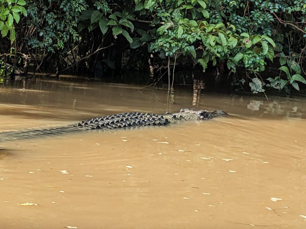 And a fully grown 7-8 foot (2.5 meter) croc cruising by our boat.