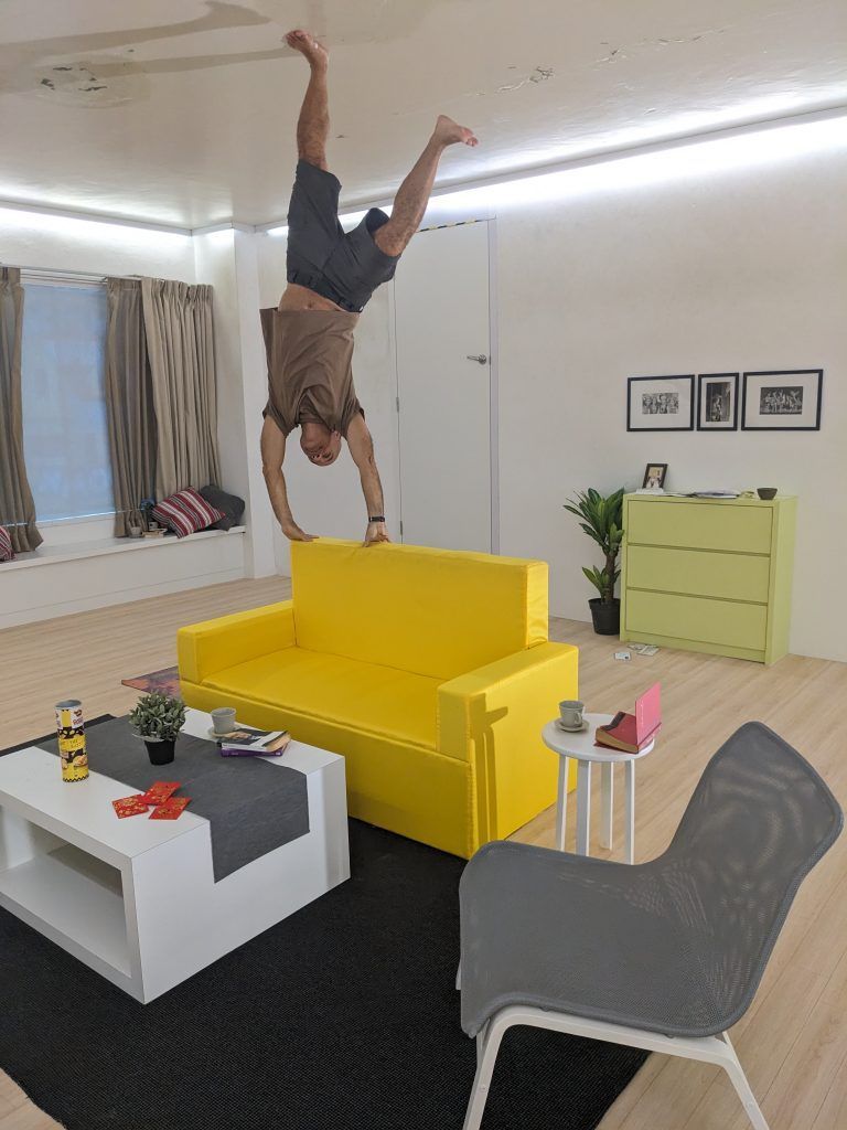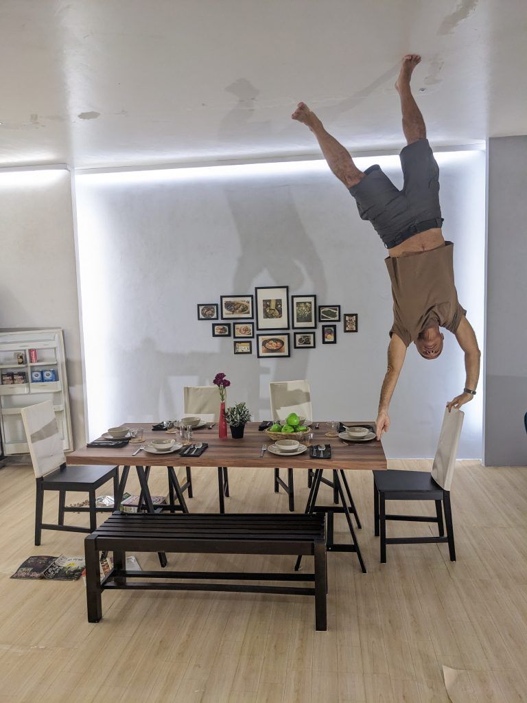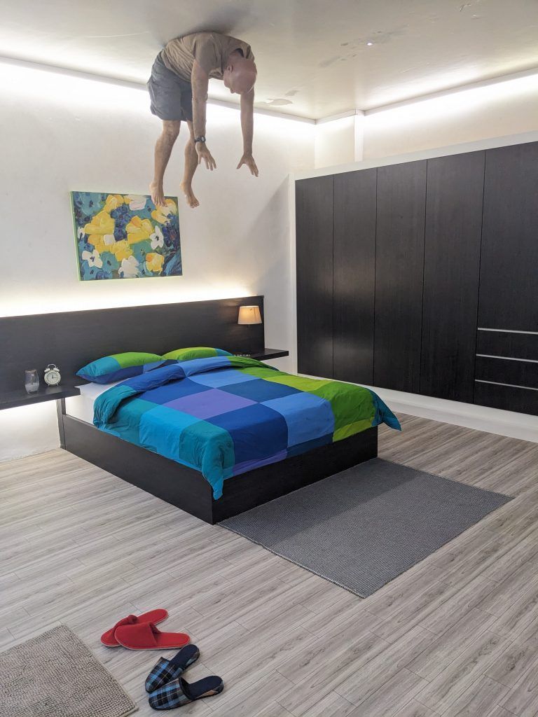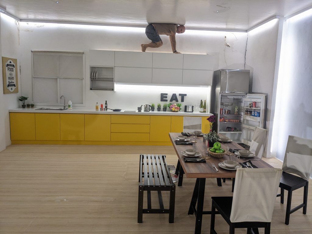 …or seeing a really cool perspective art selection at the end of the House. Notice how the perspective changes as I walked around it, and then see how it’s really just a series of triangular blocks coming out of the wall.
