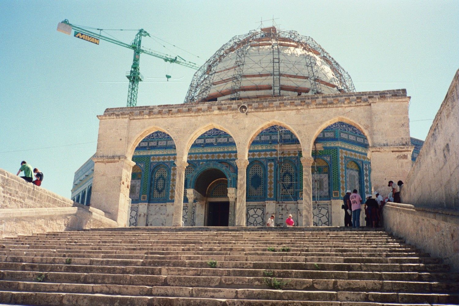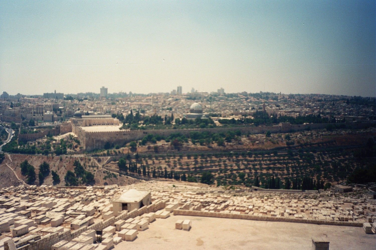 I arrived in Jerusalem around 3:30 and was dropped off in front of an Arab owned hostel in the old city just inside the Jaffa Gate. It was something of a dump, but the location was perfect and it was cheap. I spent that evening walking around a part of the new city, but most of the shops were closed for the Sabbath. The next day I wandered all over the old city. I saw the Temple on the Rock, the Wailing Wall, got lost a few times in the labyrinths that pass for the Arab Quarter, saw the place where Jesus’s tomb was, went out to Mount Zion, walked around the beautifully restored Jewish Quarter, and walked on the top of the wall surrounding the old city from the Damascus Gate to the Jaffa Gate. It is an amazing, diverse, chaotic city. I didn’t feel much spirituality there, but I did get a sense of the crazy energy which permeates the place.
