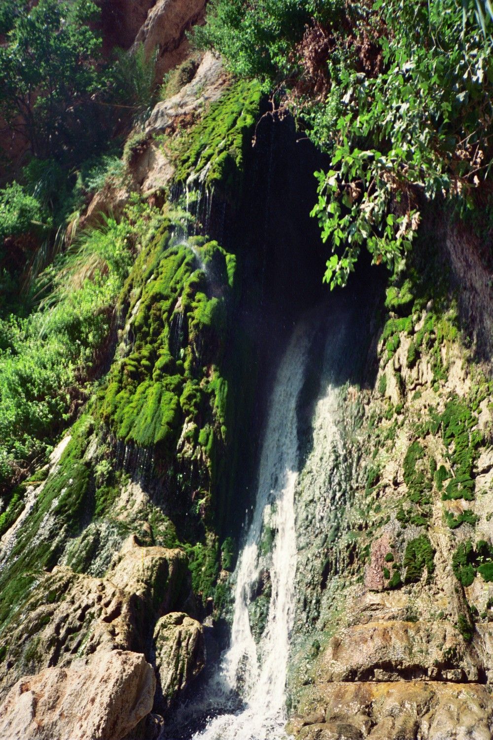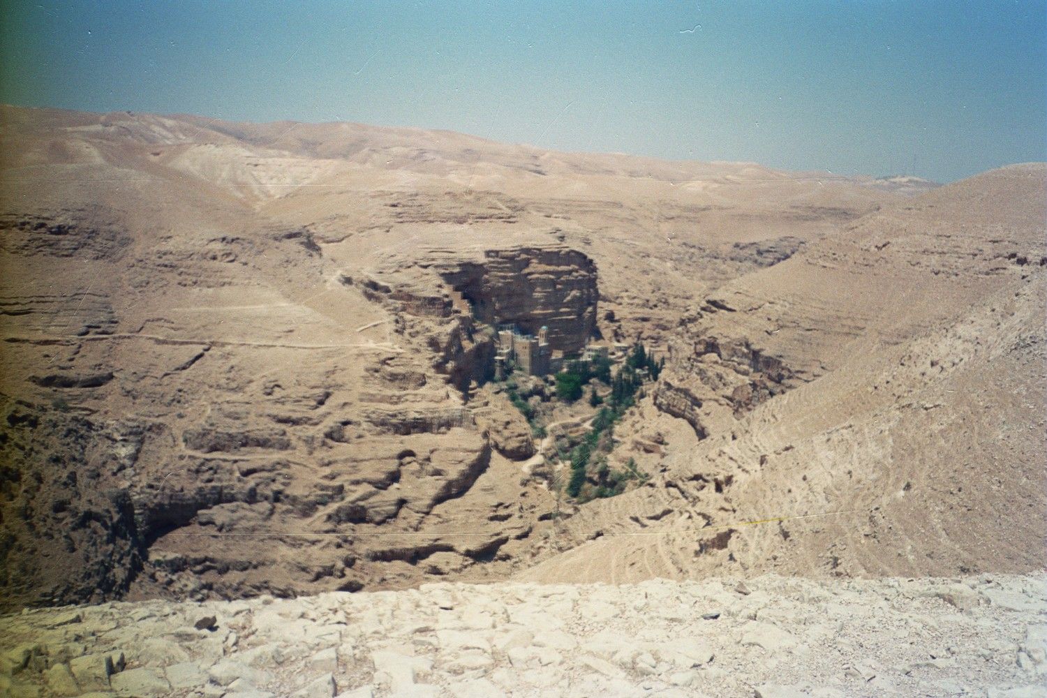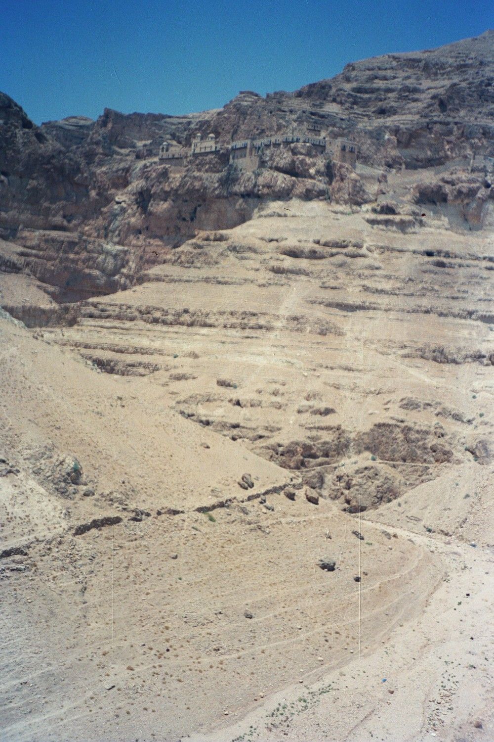 It was Saturday and I was concerned as to how I would get to Jerusalem via En Geidi on the Sabbath. There were only two buses going north that day and the lady at the hostel was not sure when their times were. My problem was solved when I met two people who were part of a group of people from hostels in Jerusalem who had come down that morning as part of a tour. They were going to tour a bunch of places and end up in Jerusalem that afternoon and they had room in their van! By 7:45am I was heading north. We stopped at the Dead Sea near En Geidi. I floated in the sea a bit, put some mud all over my body and floated some more. It was absolutely impossible to sink! We then went to Nahal David and saw the oasis and sat under the waterfalls. Another great experience. On the way to Jerusalem we also saw the cliffs where the Dead Sea Scrolls were found, went through Jericho, saw the Monastery of Temptation, where Jesus supposedly spent part of his 40 days warding off the devil, and saw St. George’s Monastery in the small canyon.