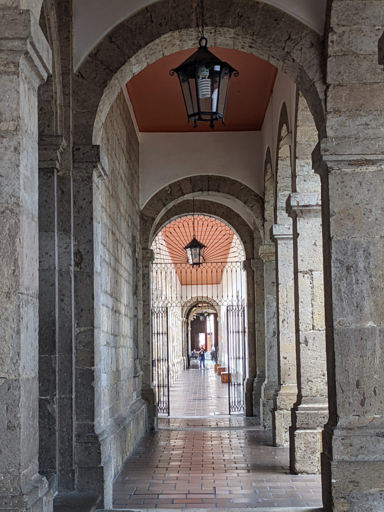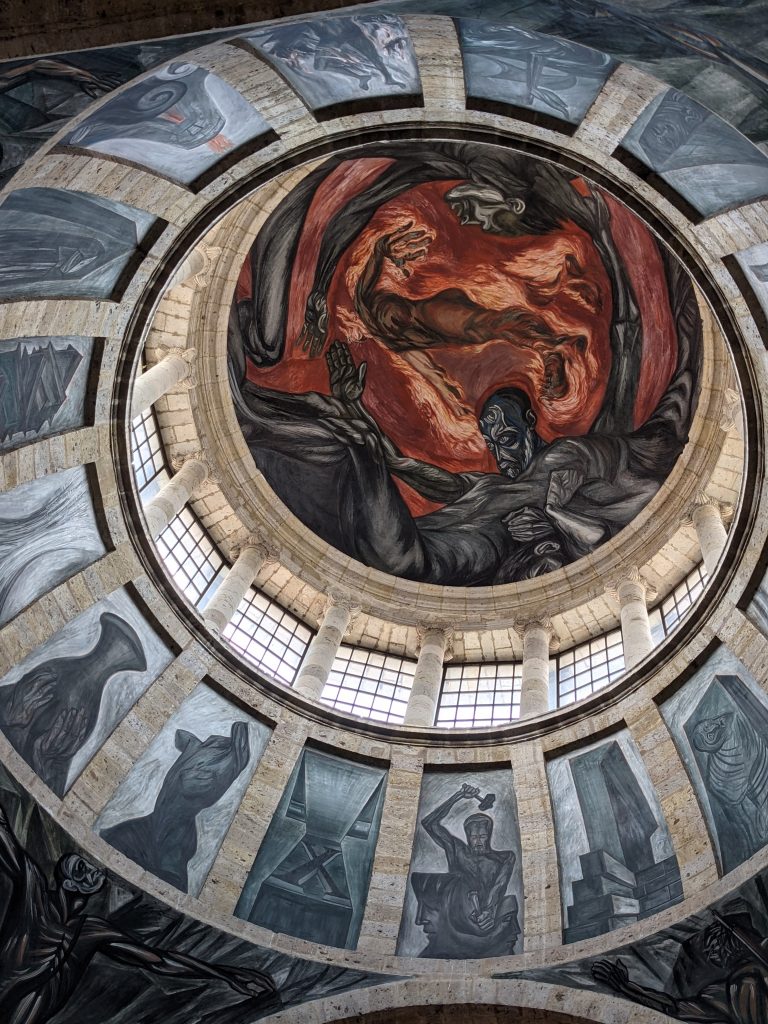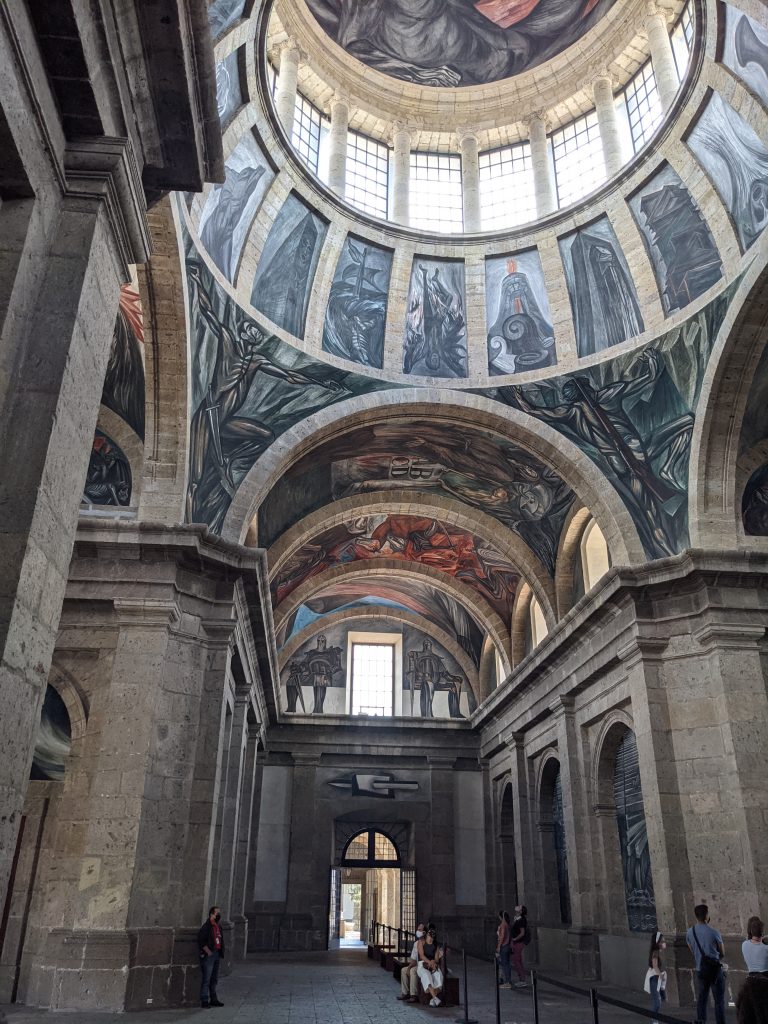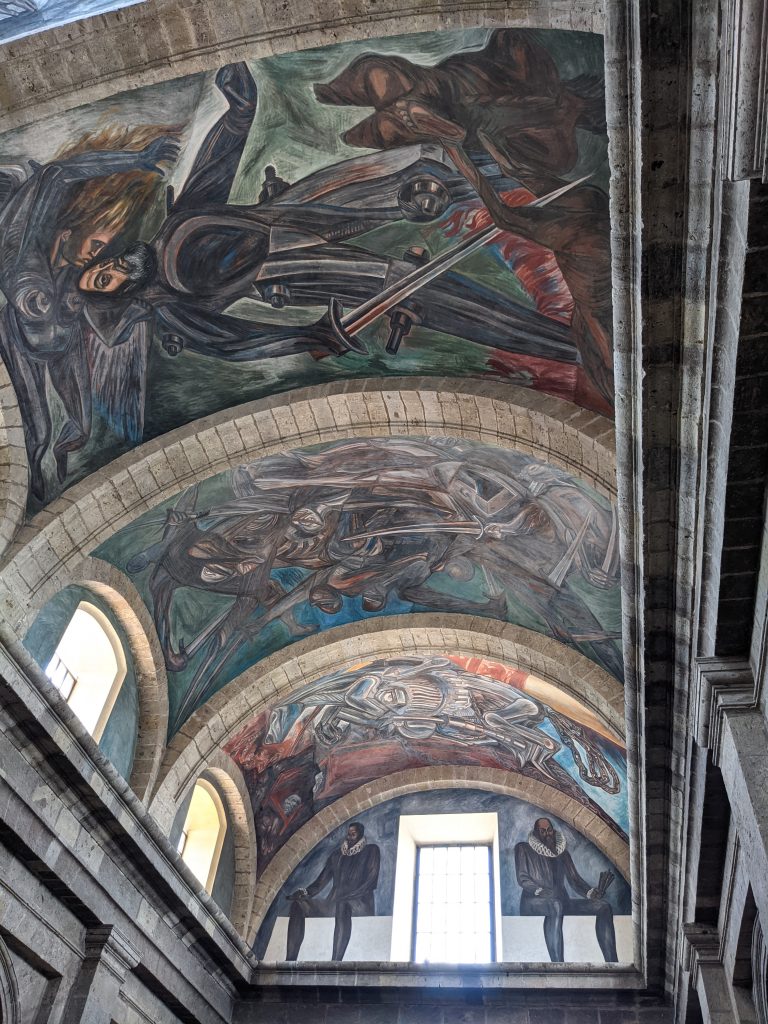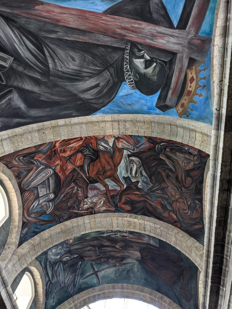 I visited the Cabanas Museo. It was originally a huge orphanage founded in 1805. It’s now a museum which includes 23 separate patios sourrounded by schools of art, music and dance; an art cinema/theatre; various exhibits; and a main chapel that now contains some amazing murals by the famous Mexican artist Jose Clemente Orozco.