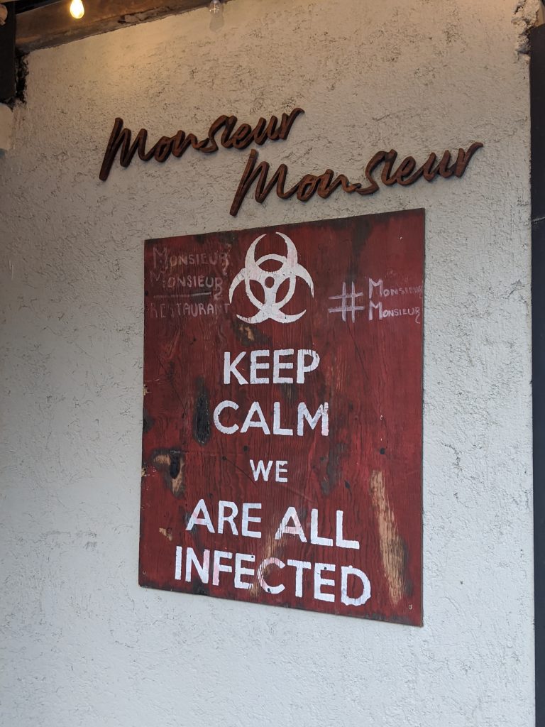 We are in the Mexico code orange for Covid, so most people wear masks while walking around and you have to have your temperature checked and your hands sanitized when you walk into any store or restaurant. Bars, beaches, gyms and yoga studios are still closed.