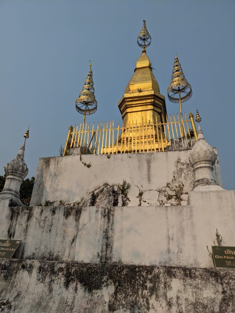 One of the landmarks of Luang Prabang is Mount Phou Si which is a 100 meter high hill in the center of the city. It’s a local religious site, and houses several Buddhist shrines.