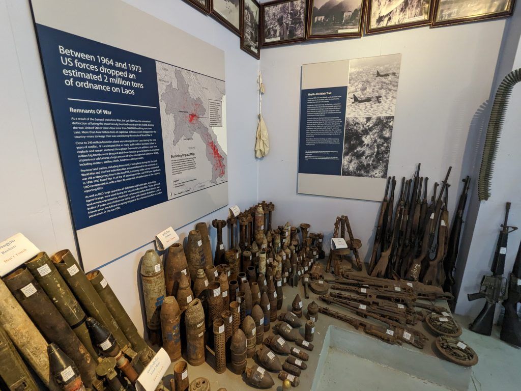 One of the more sobering places in Luang Prabang is the UXOLAO Visitor Center. UXO stands for unexploded ordinances and it’s a very sad legacy of the Vietnam War. The North Vietnamese had the Ho Chi Minh Trail supply line from North Vietnam that snaked through Laos and Cambodia to reach South Vietnam. They never admitted the trail existed and the US never admitted that we bombed the hell out of Laos and Cambodia to try to stop the flow of supplies.