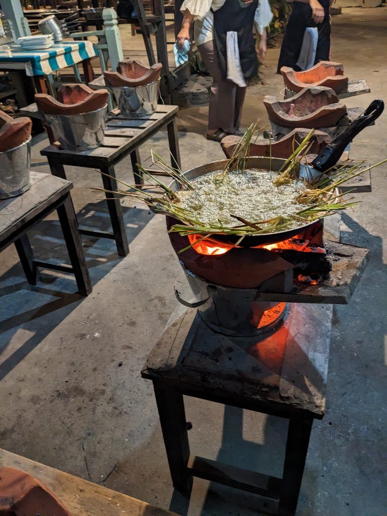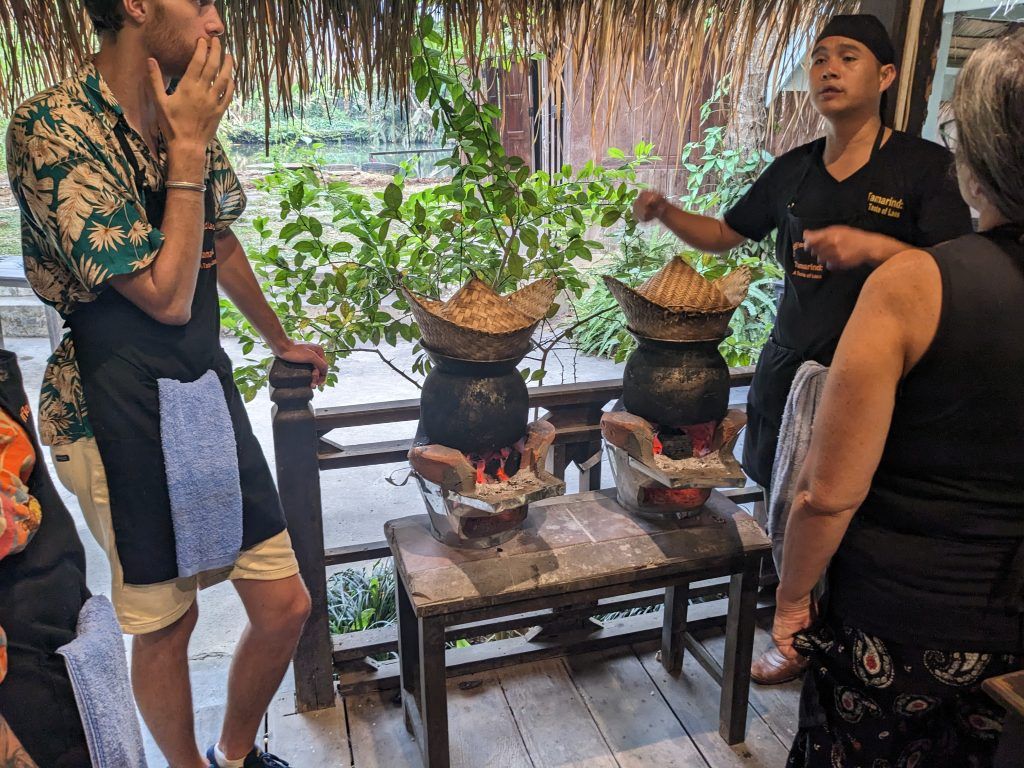 After “massaging” the sticky white rice with our hands to clean it, the rice is being cooked over these fires.