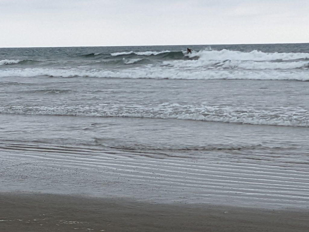 Day 1 – had a nice 7.5 foot rental board. First 20 minutes was reading the waves. Then caught 3 waves in 40 minutes. Then the conditions changed; the outside waves got bigger and more walled off and the inside waves got softer. Couldn’t catch anything else.