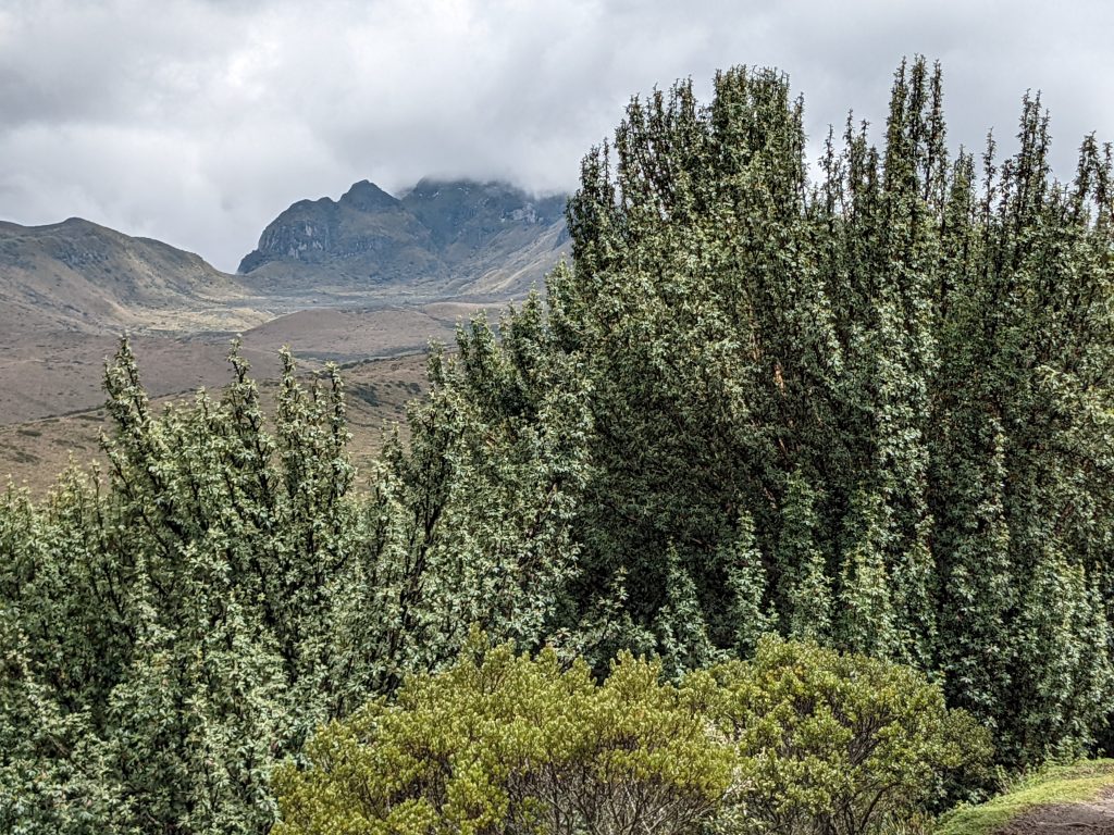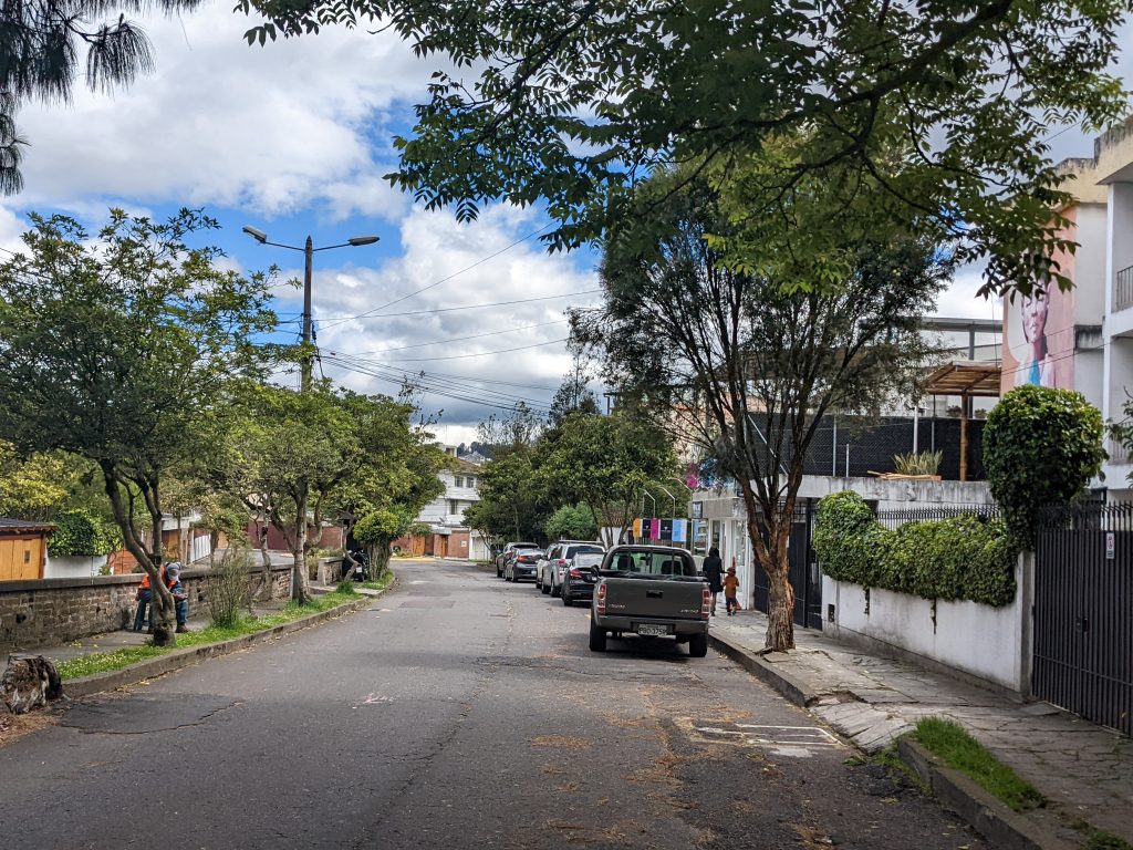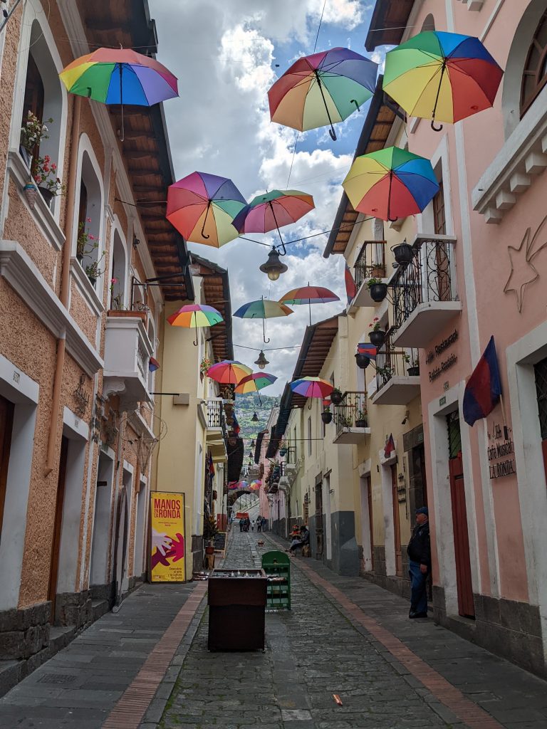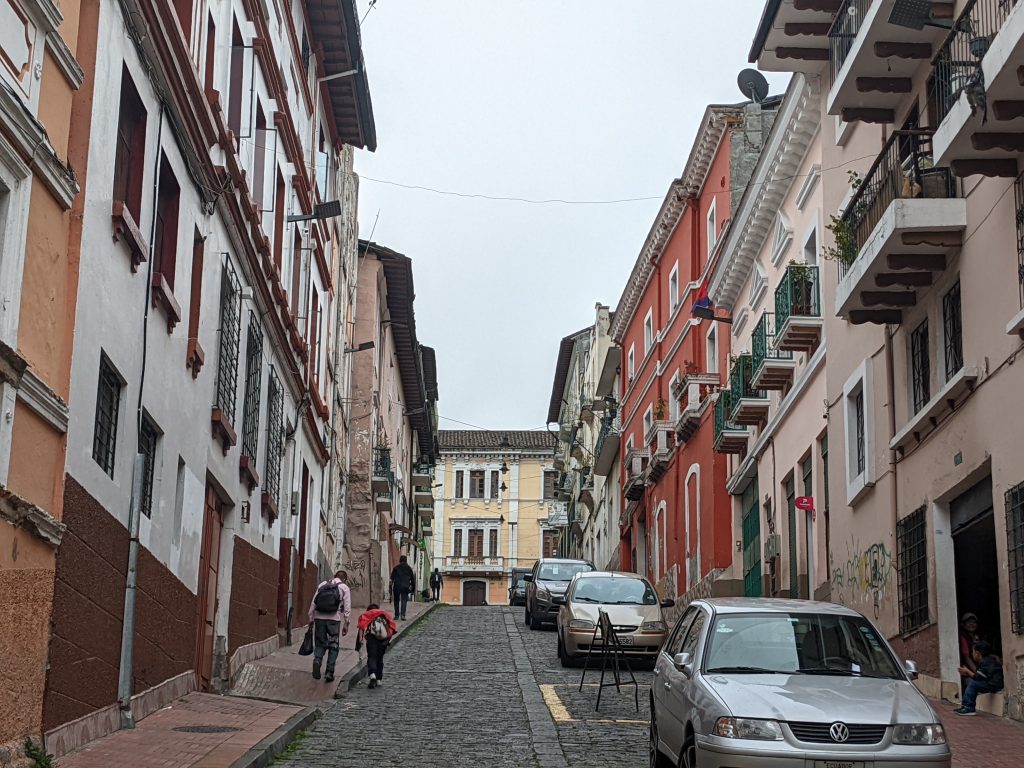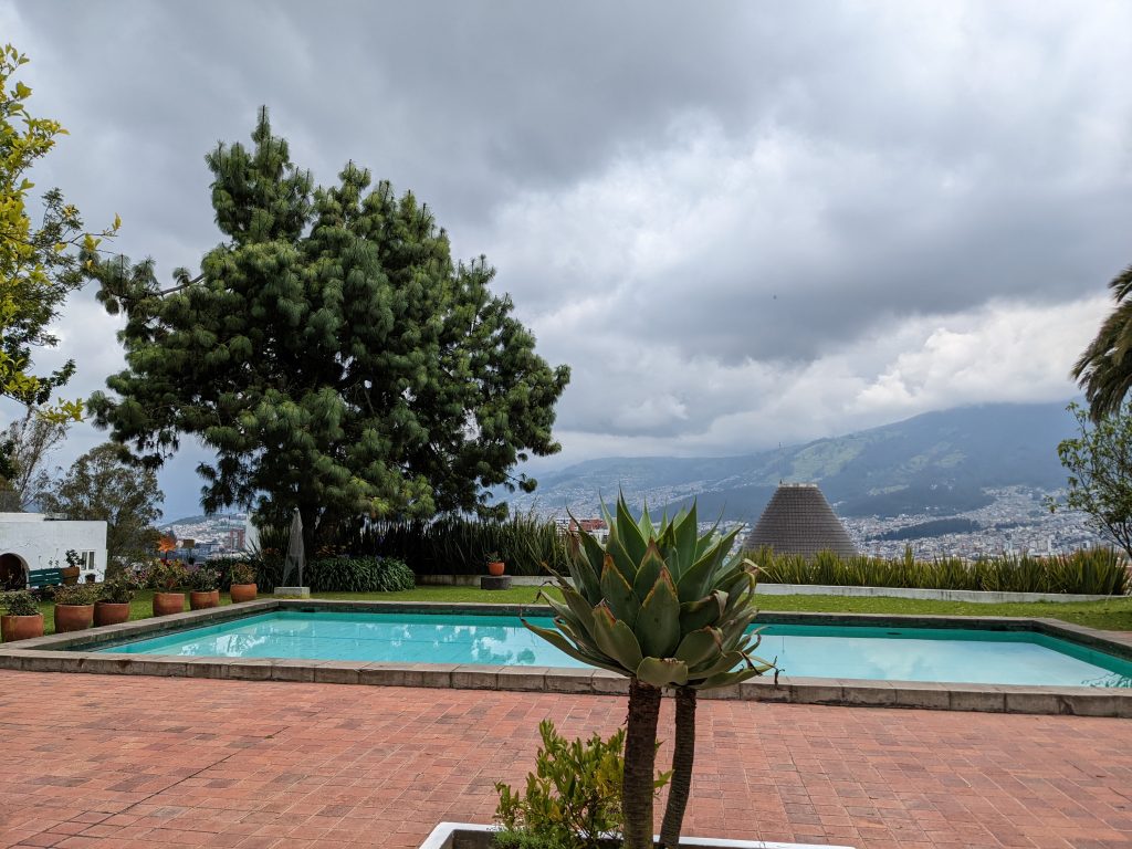 Quito is set into the palm of the northern Andes. It’s in a long valley surrounded by beautiful, tall mountains and one still somewhat active volcano. At 2,850 meters (9,350 feet) Quito is the second highest national capital in the world (after La Paz in Bolivia). It is also right on the equator. So the days generally have a spring-like quality, but the weather can also change very quickly. It can be sunny and warm in the morning and cold and drizzly by the late afternoon.