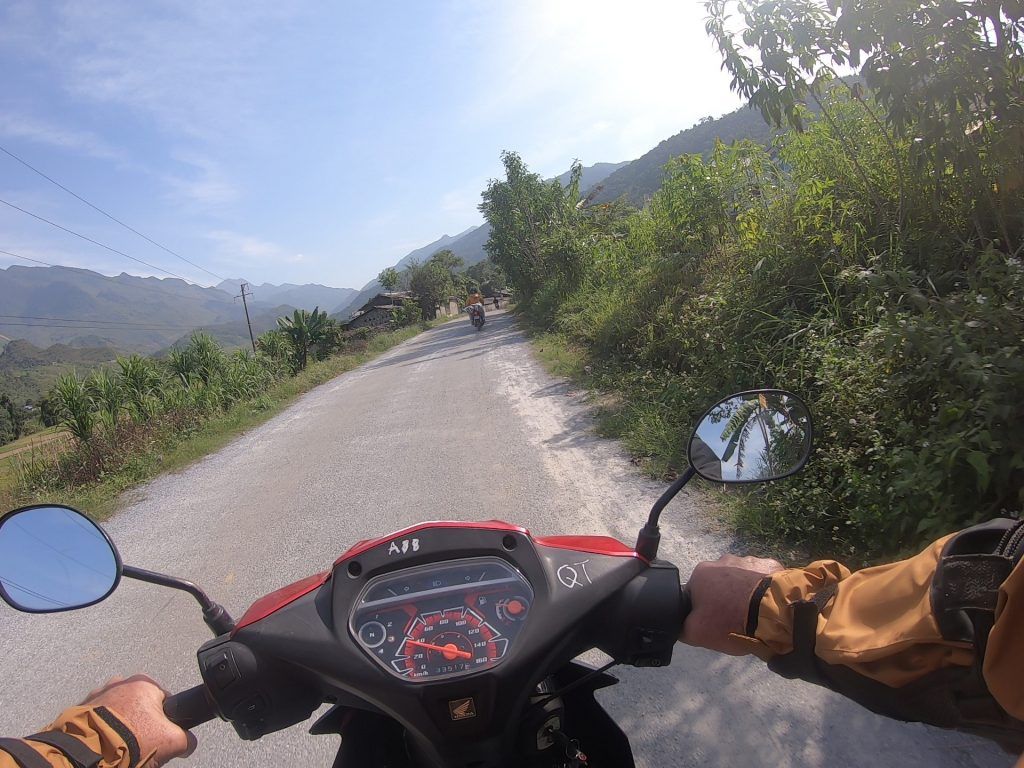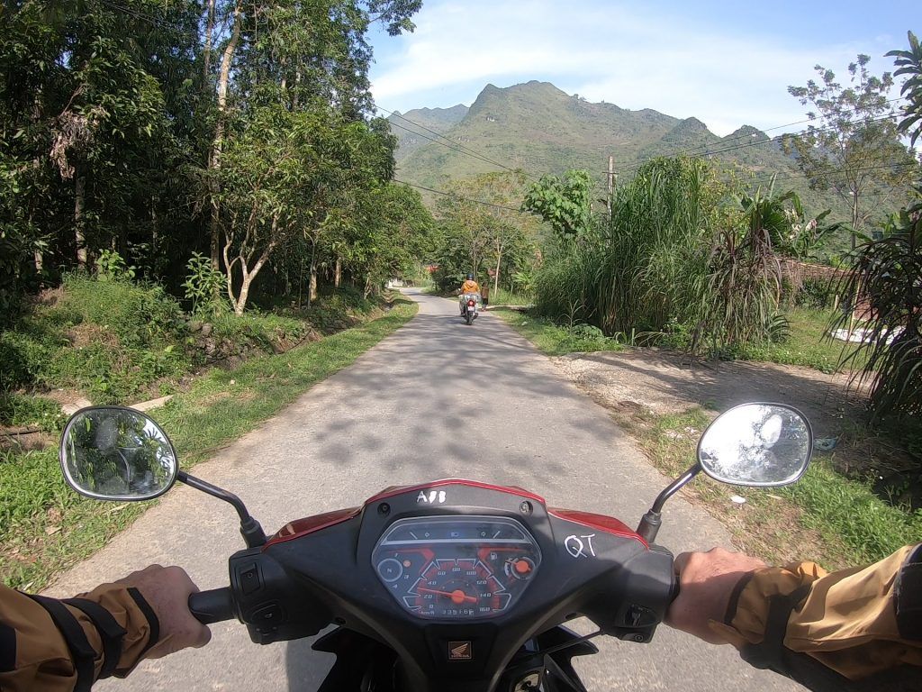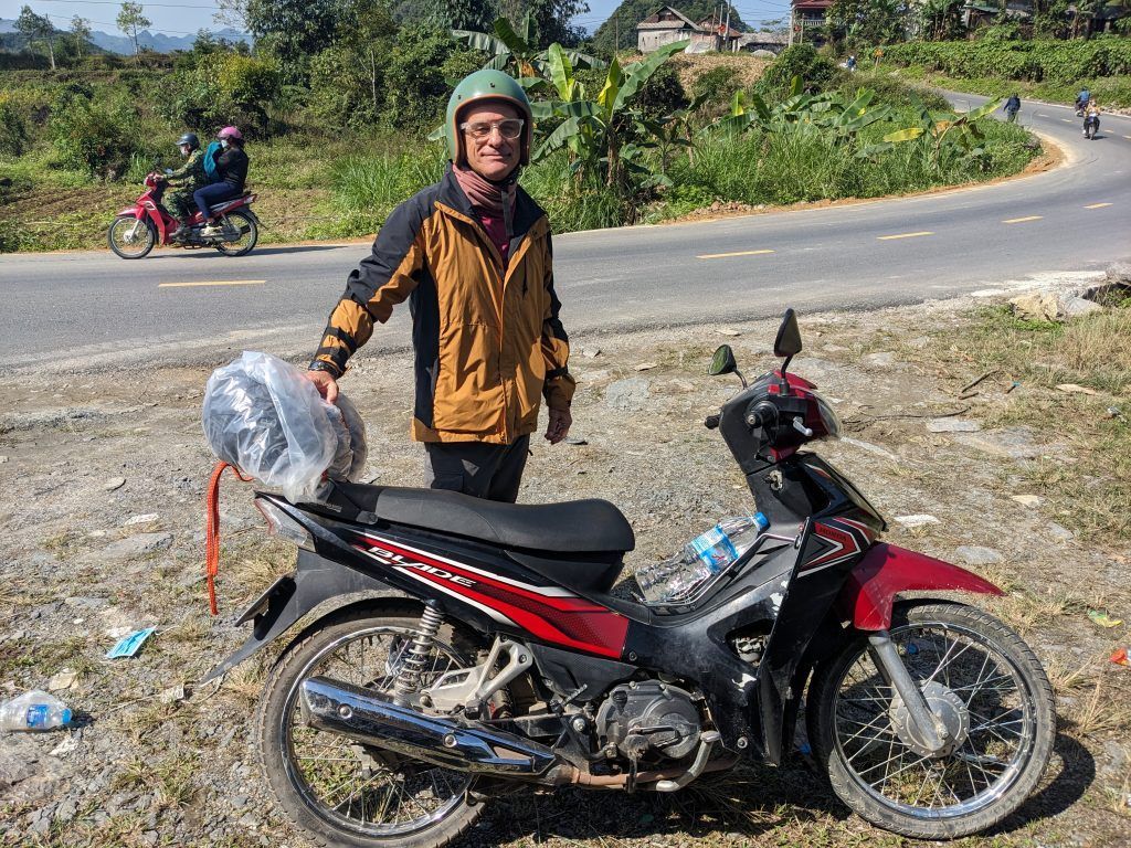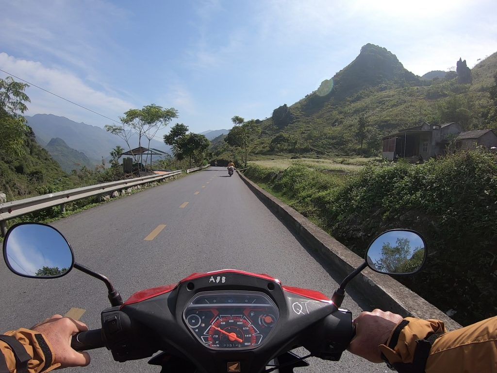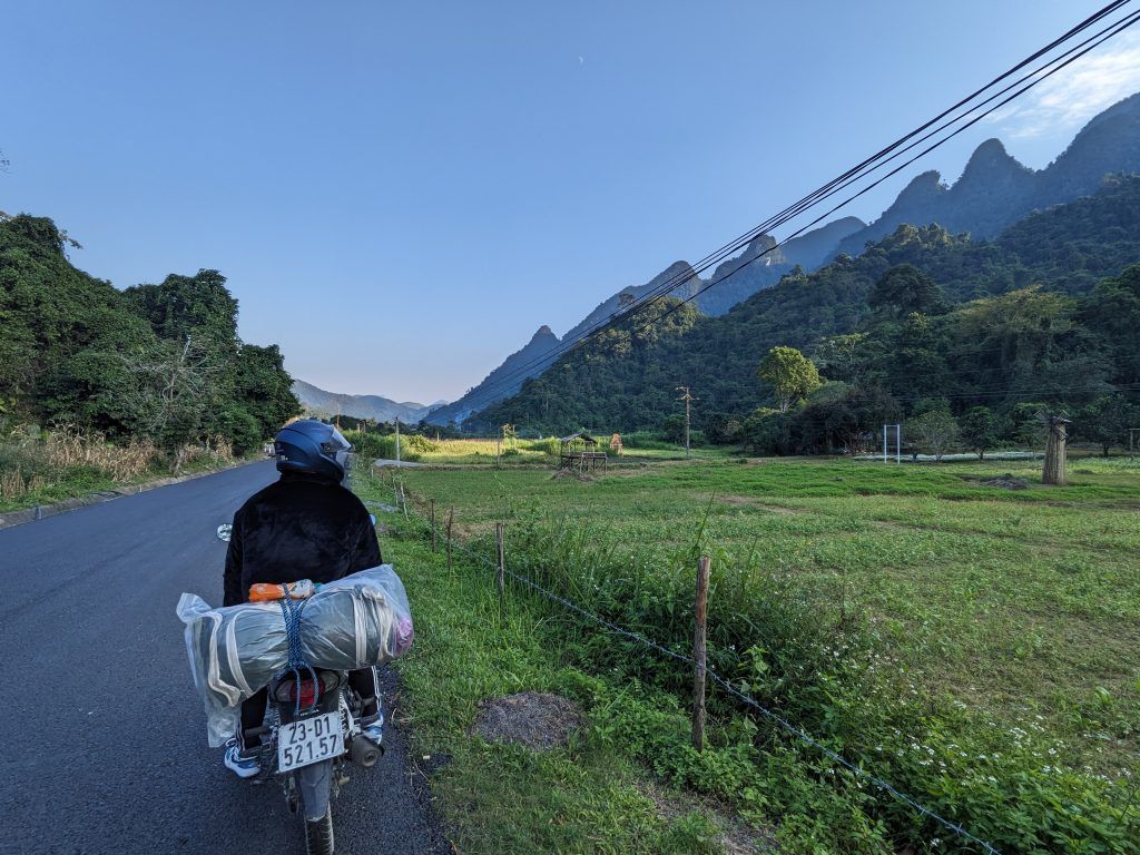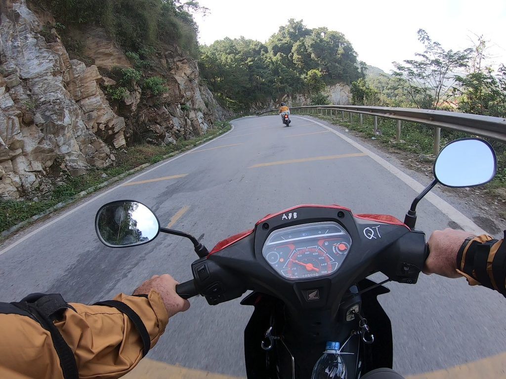 I had a Honda Blade semi-automatic motorcycle with my three nights of gear tied to the back. I bought a nice windbreaker/rain jacket in Hanoi for $26 that I ended up giving to my guide at the end of the tour. I wouldn’t need it anywhere else in SE Asia. The tour company also gave me elbow and shin guards. Thankfully, they were never needed on the trip.