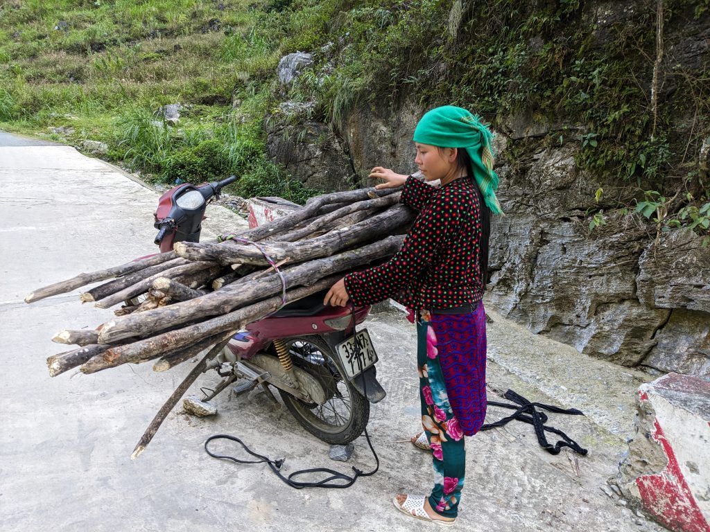 This tiny, young woman spent the morning climbing up a hill to get this bundle of wood and was going to take it home on her bike. My 23 year old guide (who was a rare Vietnamese taller than me) tried to pick up the bundle to help her. It was so heavy and awkward he could barely get it off the ground.